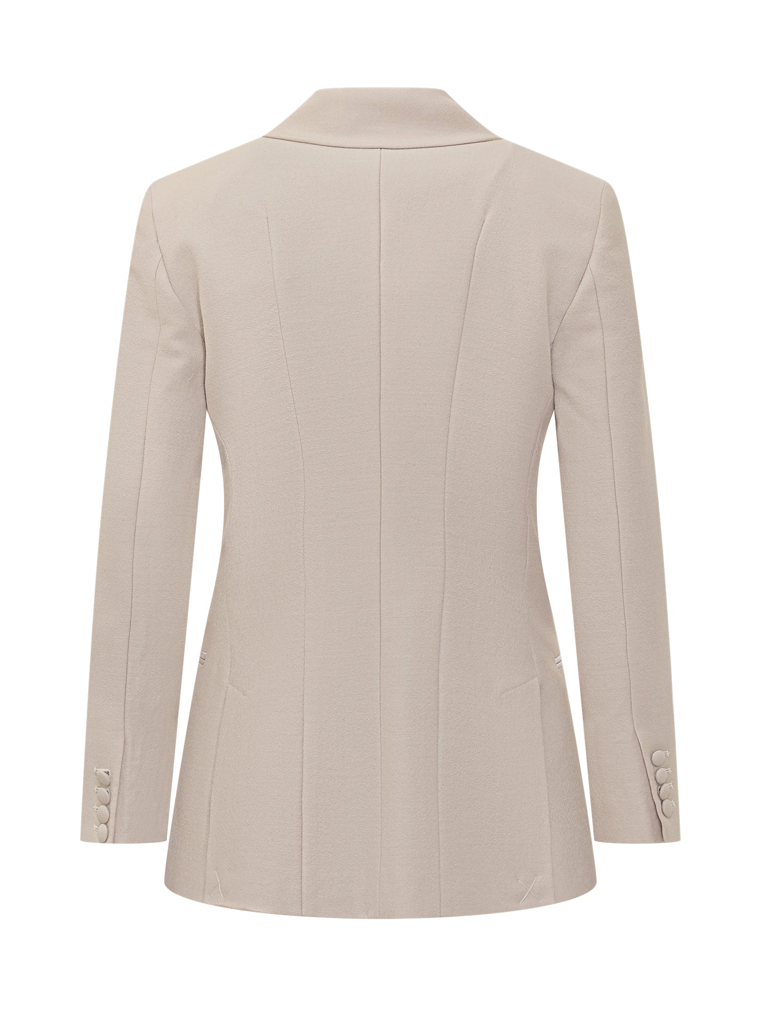 Blazer Marella Assoluto doppiopetto in beige con revers a contrasto in raso bianco e tasche a filetto.