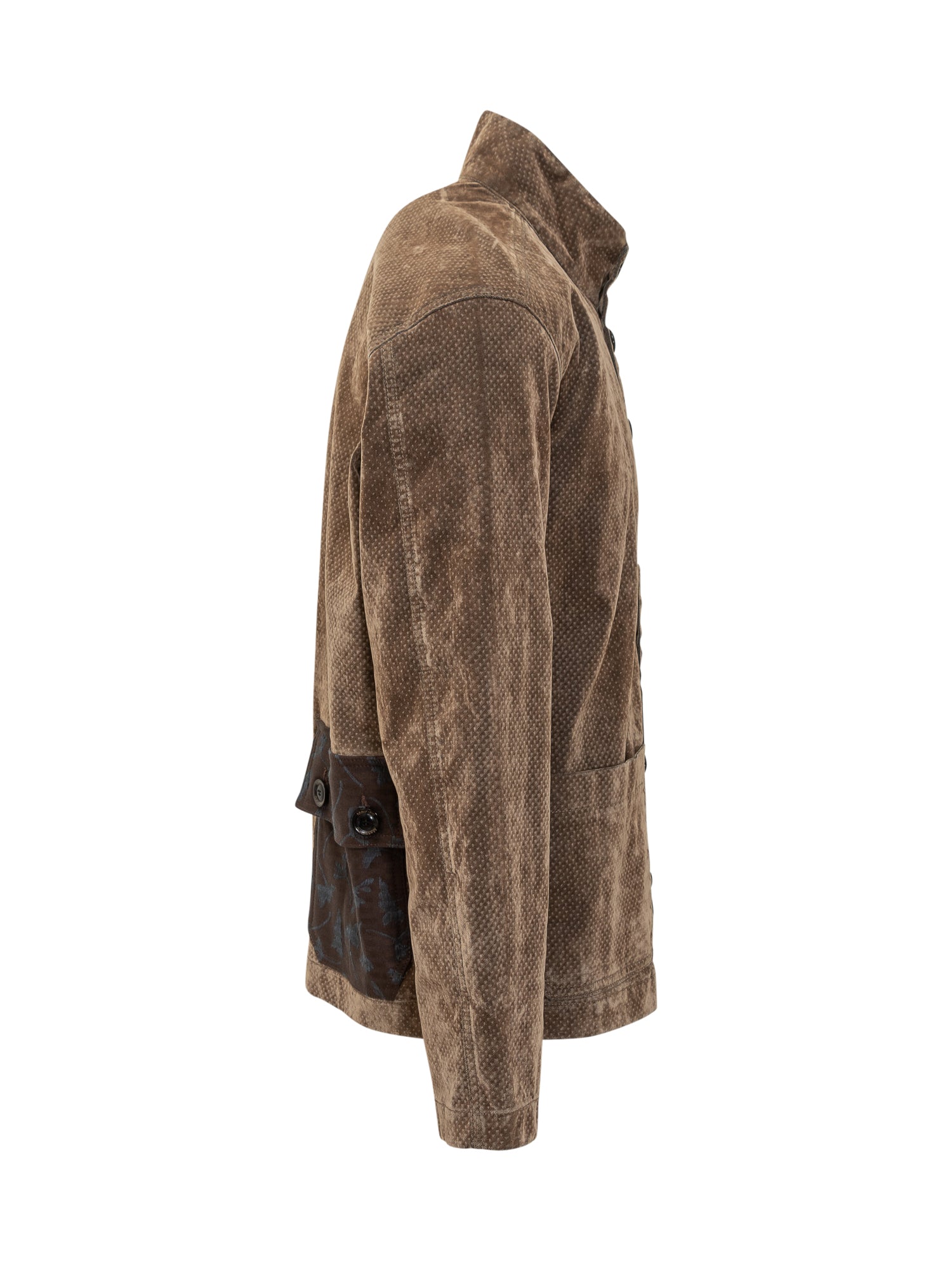 Maurizio Massimino Giovanni 788 jacket flock velvet. Designed with a high collar, button closure and patch pockets.