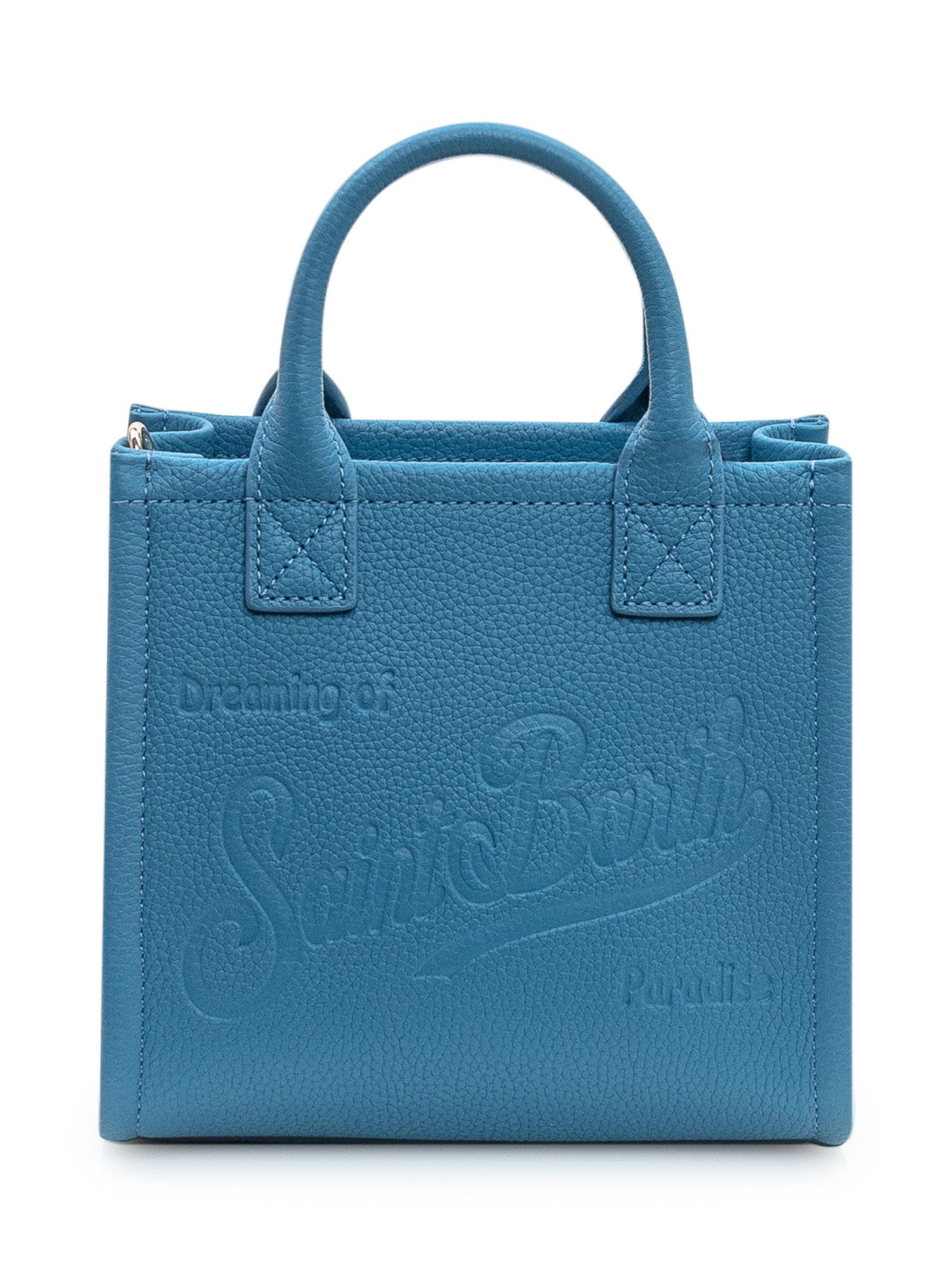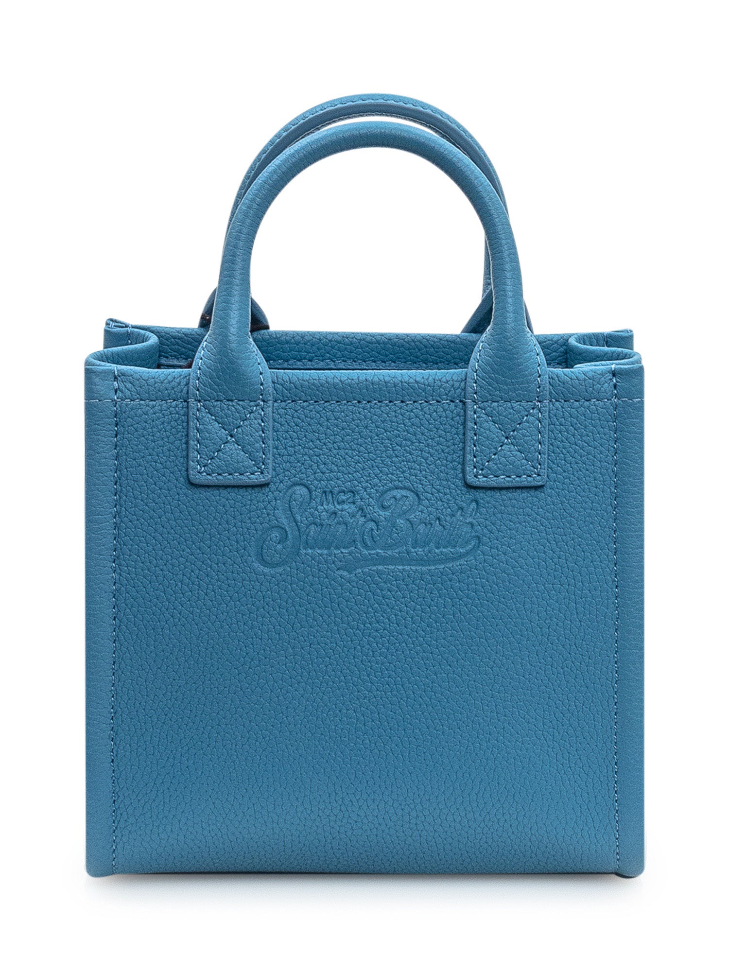 MC2 Saint Barth Vanity Bag Mini in textured light blue leather with embossed logo.
