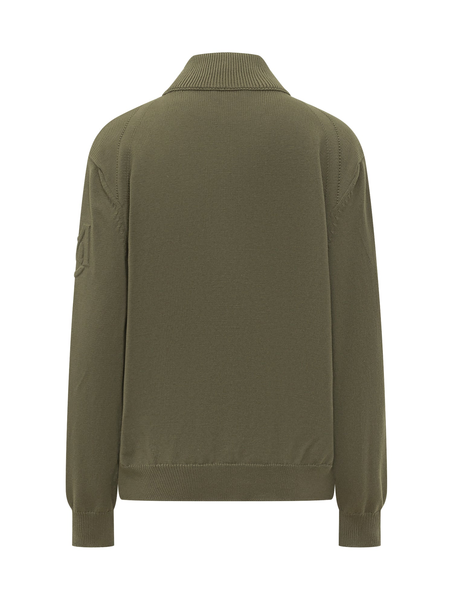 Padded tricot cardigan featuring a quilted nylon front combined with knit sleeves and details. Designed with a high collar, front zip closure and side pockets.
