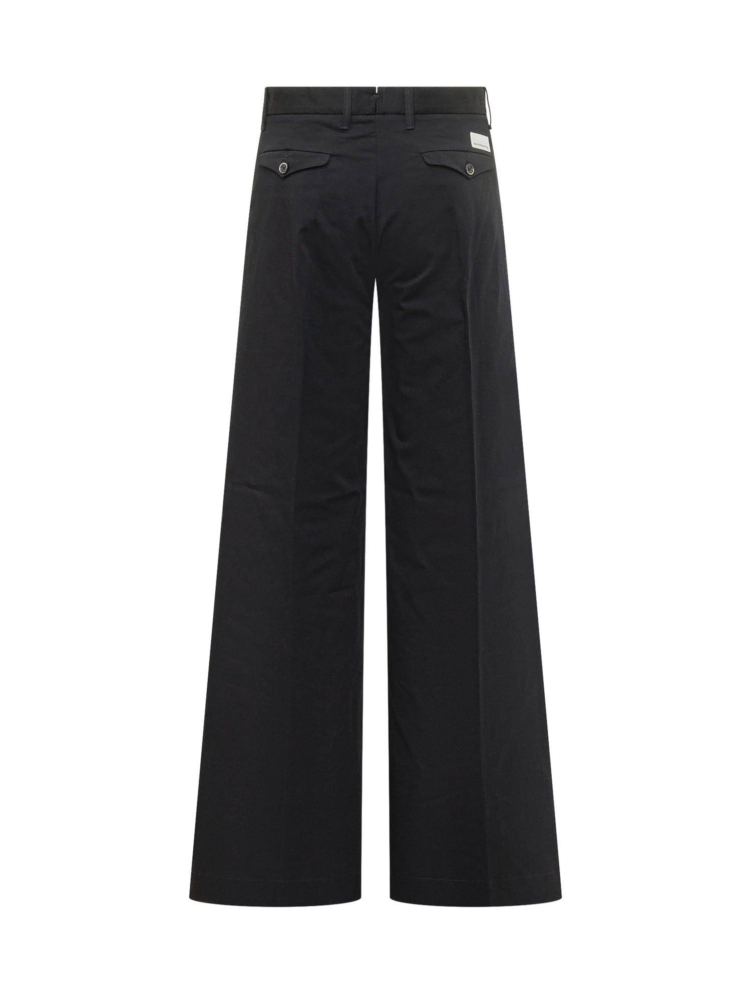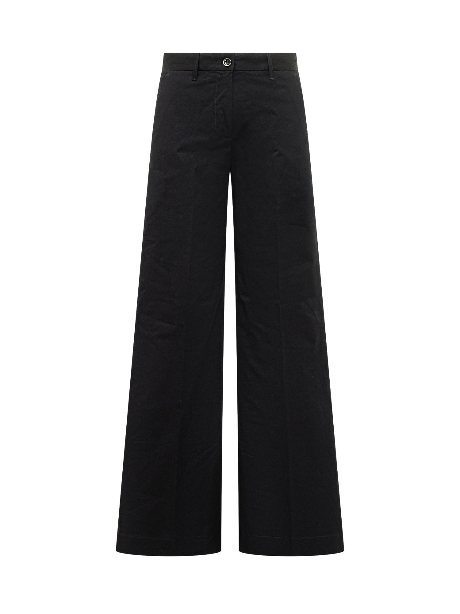 Chino palazzo pants with front closure and belt loops. Wide leg and defined construction for an elegant and modern style.