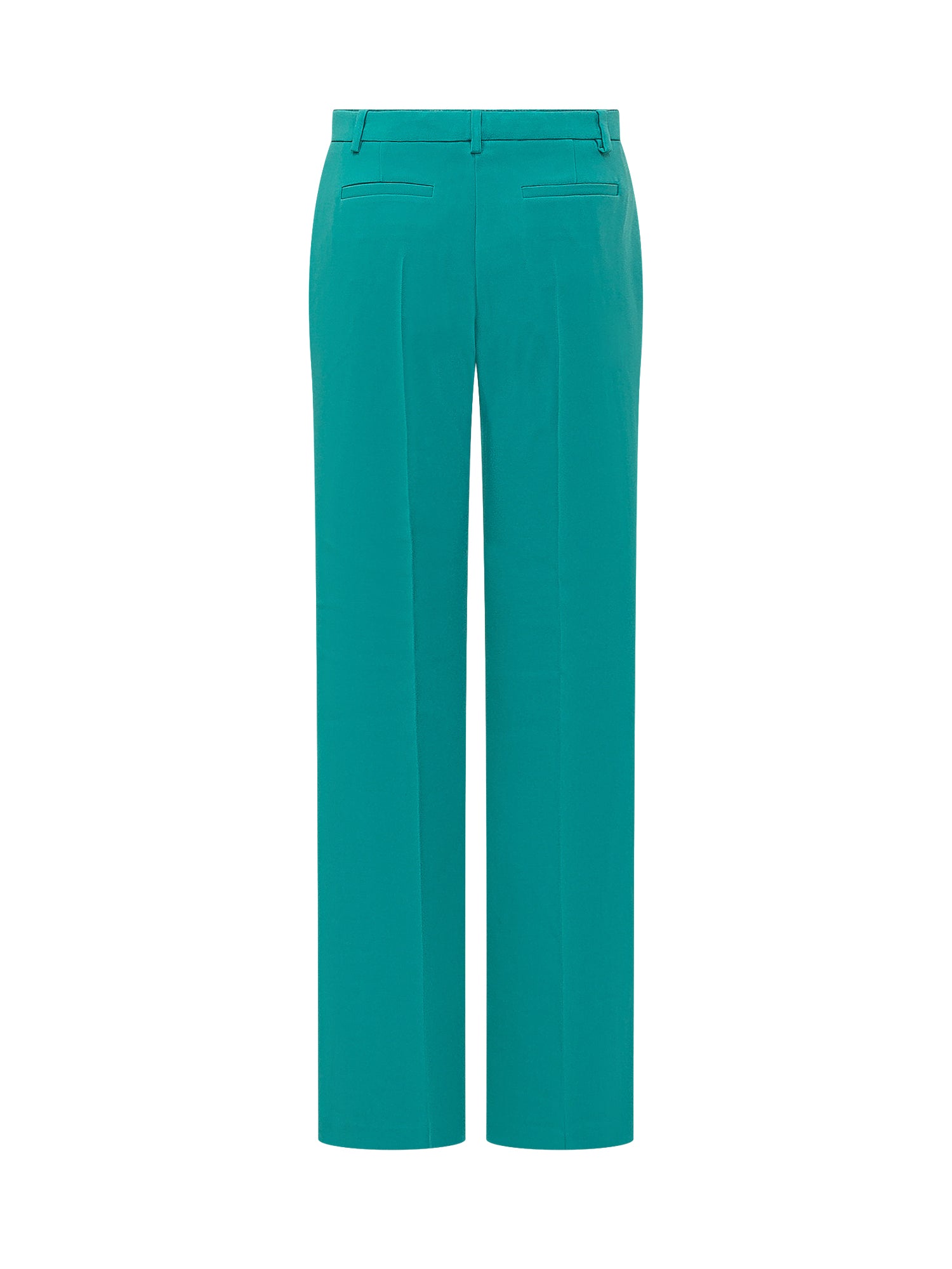 Womens elegant high waist trousers, straight leg with front crease, belt loops at waist. Zip, button and hook closure.