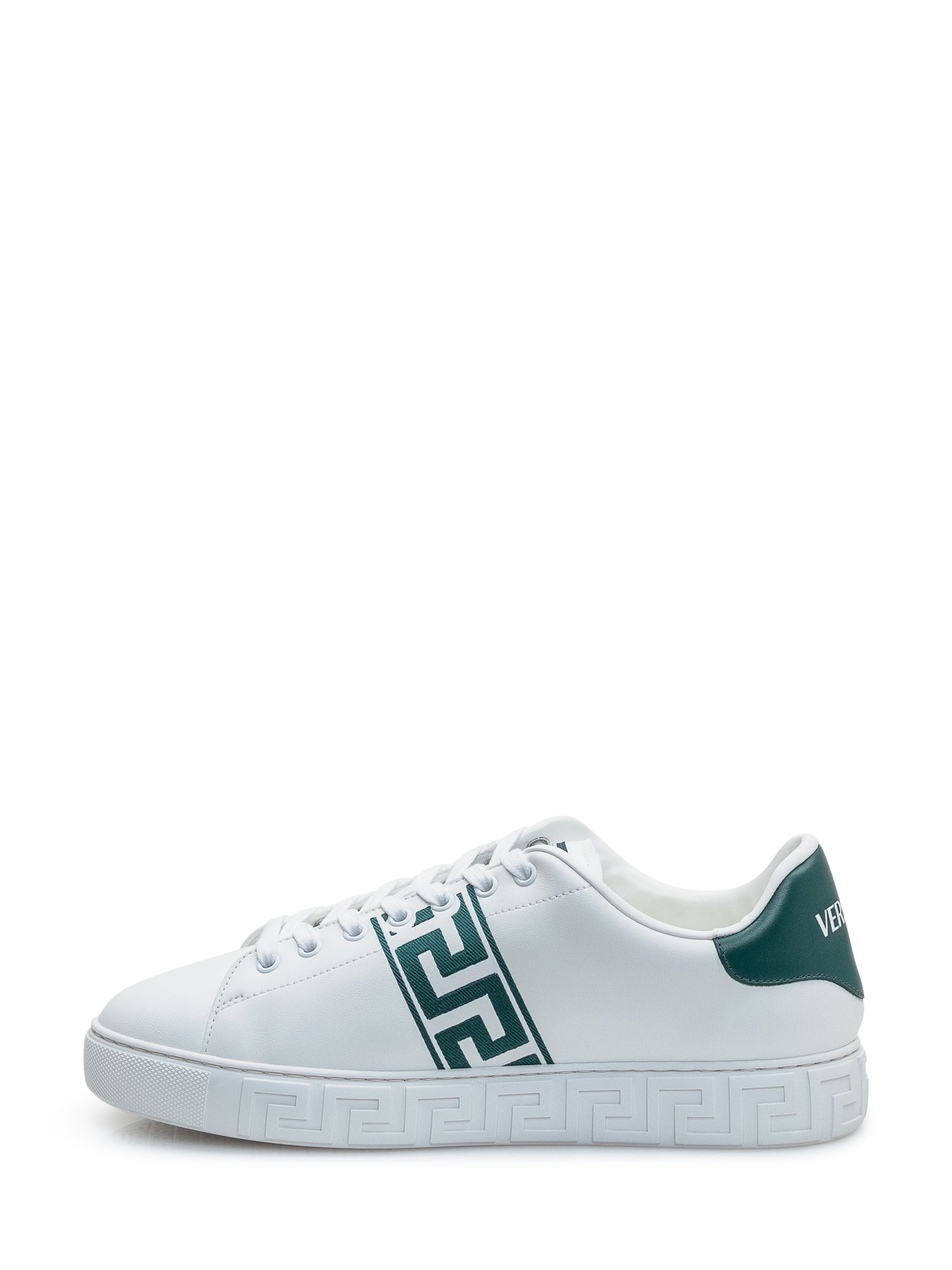 Low-profile sneaker with smooth upper and graphic side detail.