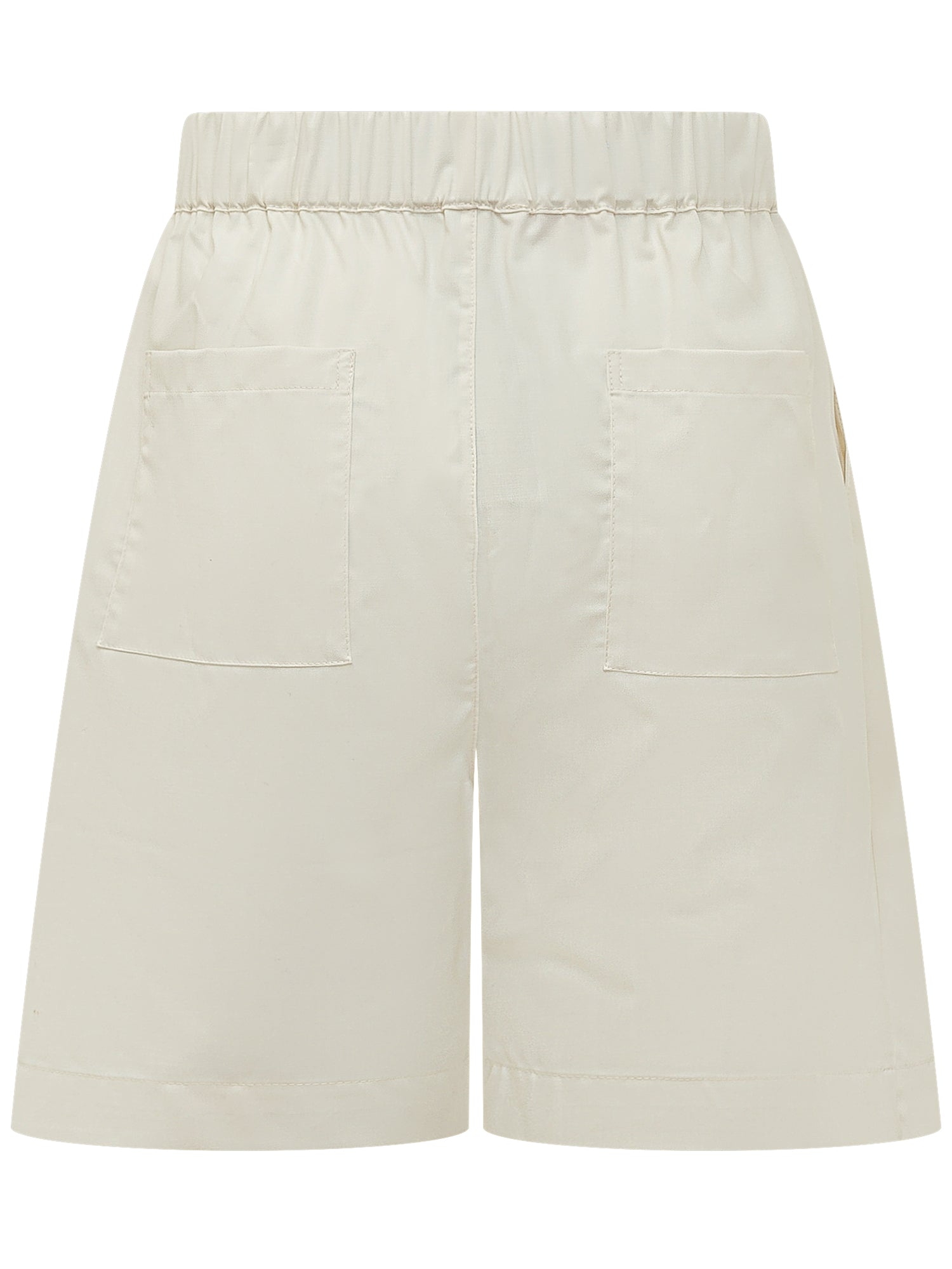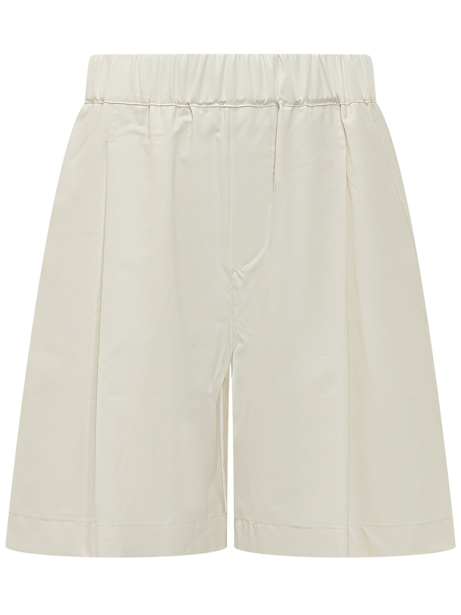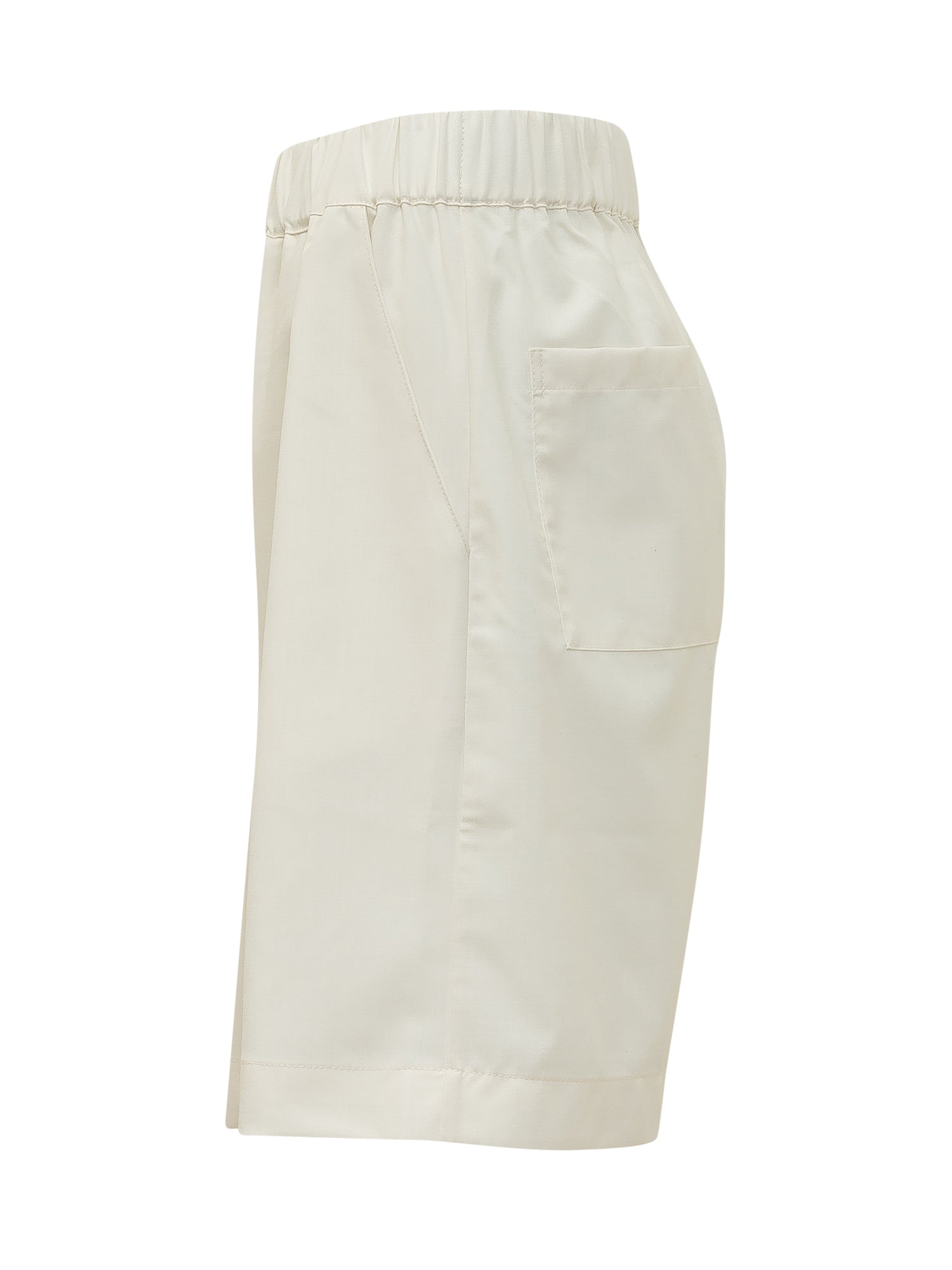 Bermuda Fresh Wool con vita elasticizzata e chiusura frontale. Gamba ampia al ginocchio e linea dritta. Design minimal con cuciture verticali e fondo rifinito.