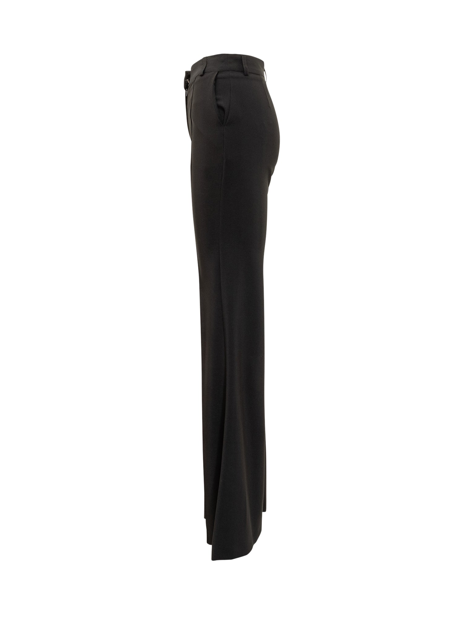 Pantaloni Actualee in tessuto nero con linea a zampa. Vita regolare, taglio elegante e design fluido che slancia la silhouette.