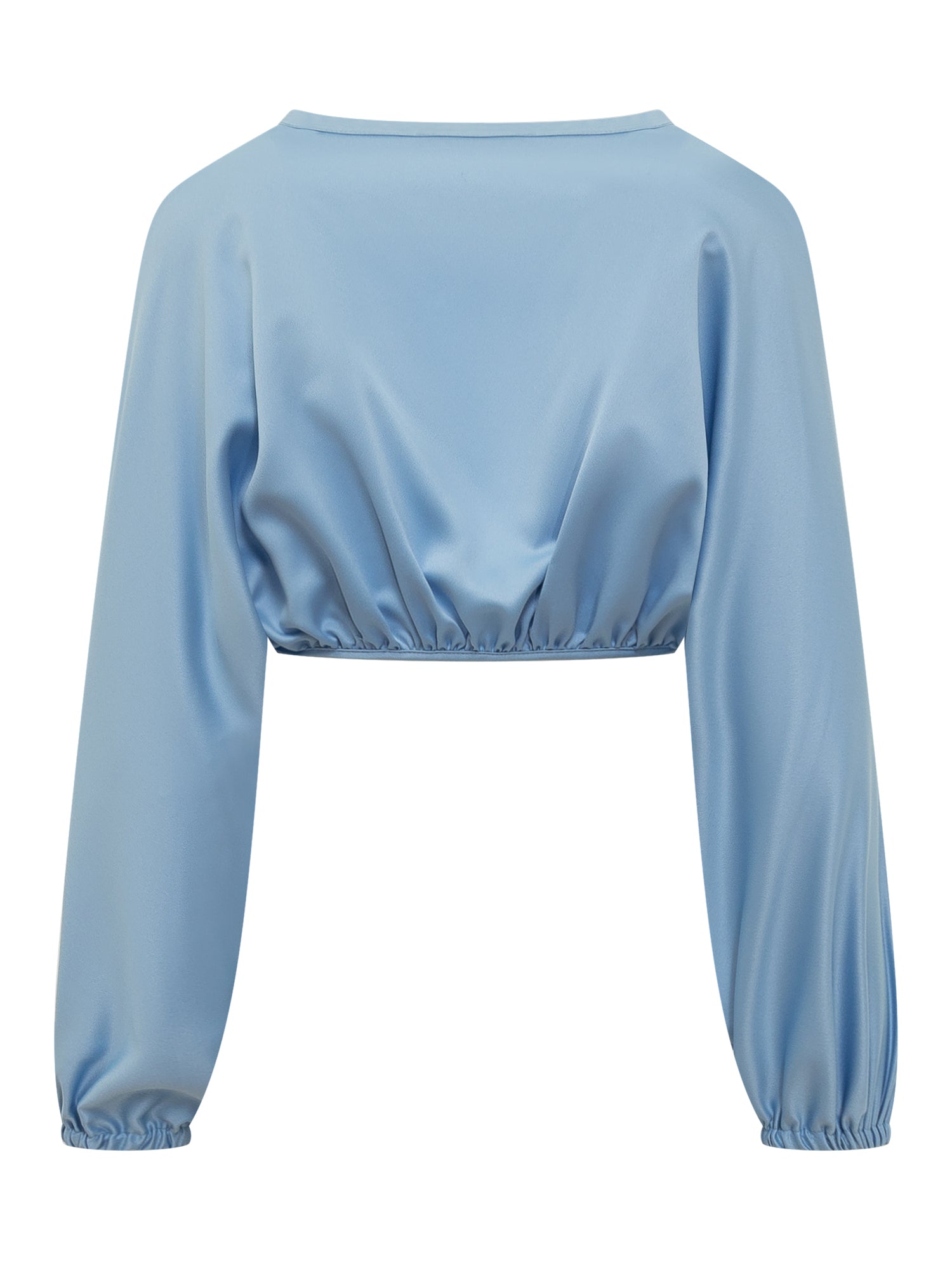 Coprispalle cropped a maniche lunghe. Scollo con apertura sul davanti. Polsi elasticizzati.