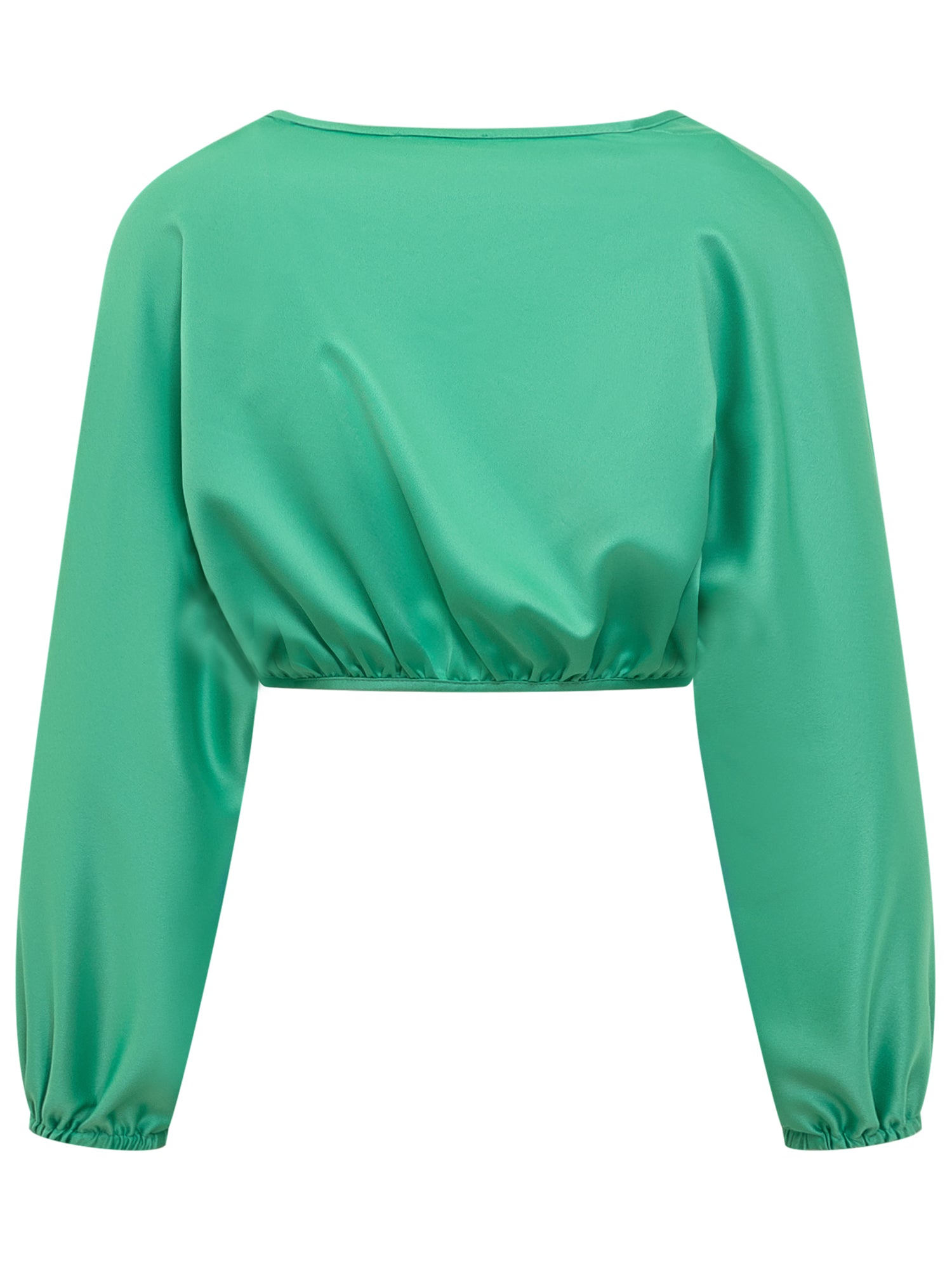 Coprispalle cropped a maniche lunghe. Scollo con apertura sul davanti. Polsi elasticizzati.