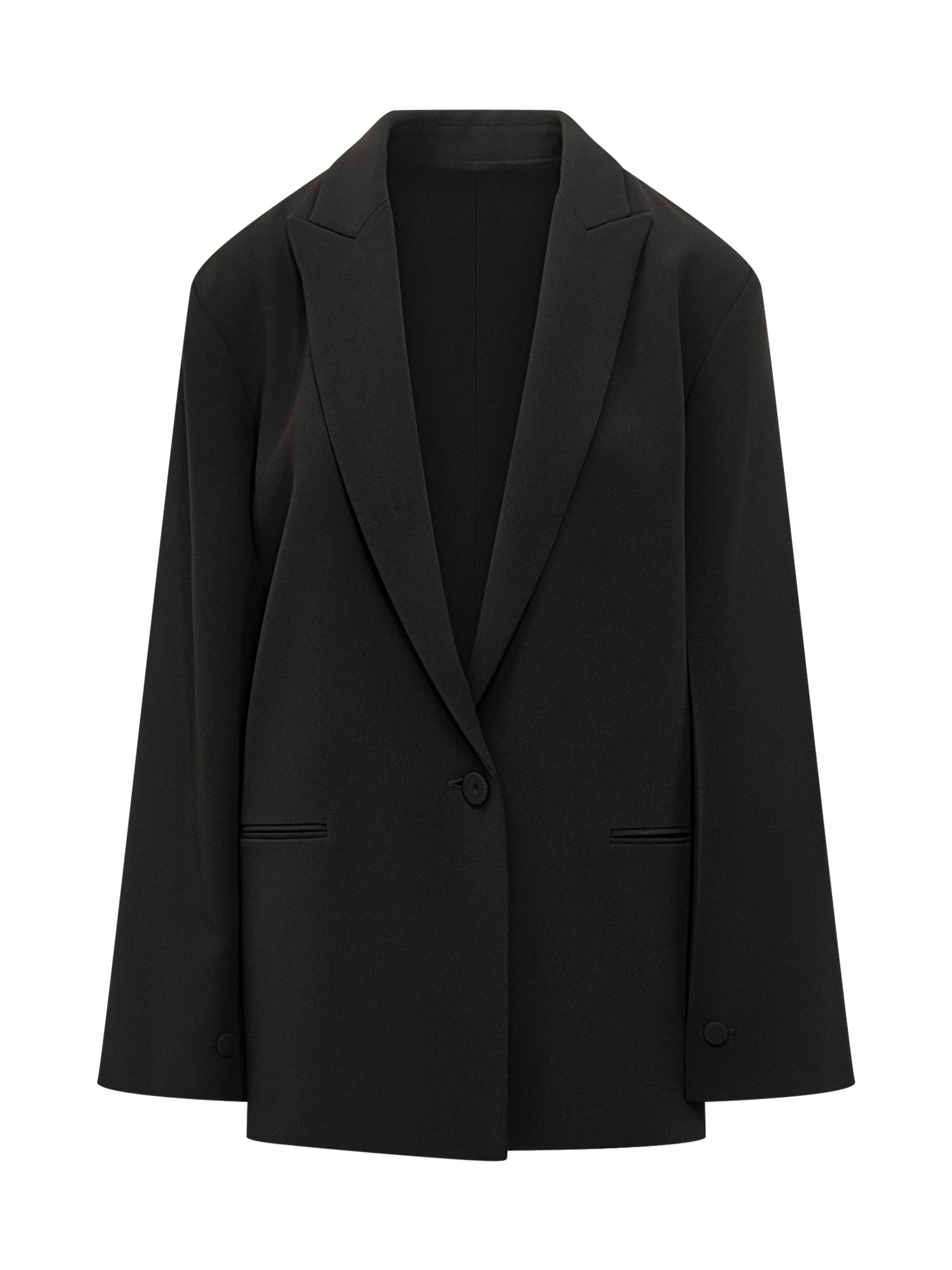 Blazer nero Alberta Ferretti dal taglio elegante con chiusura monopetto e revers classici.