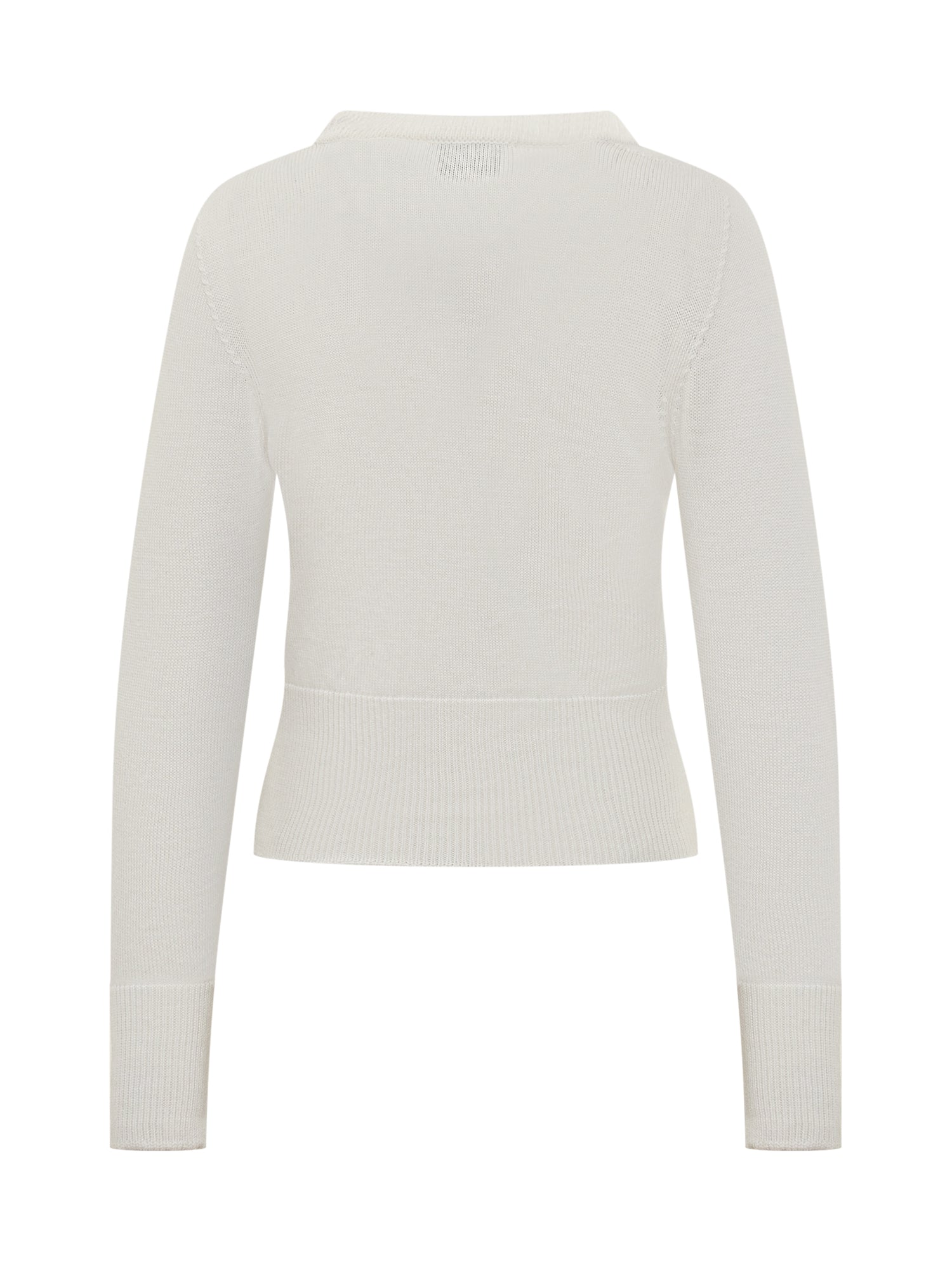 Maglia Alpha Studio in lana bianca con girocollo e maniche lunghe. Un design pulito e aderente che valorizza la silhouette con eleganza e semplicità.
