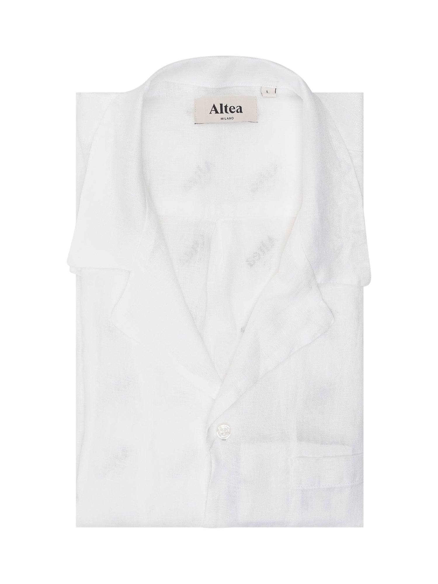 Camicia Hadley in lino con colletto aperto e chiusura frontale con bottoni. Tasca applicata sul petto e design con linea morbida.