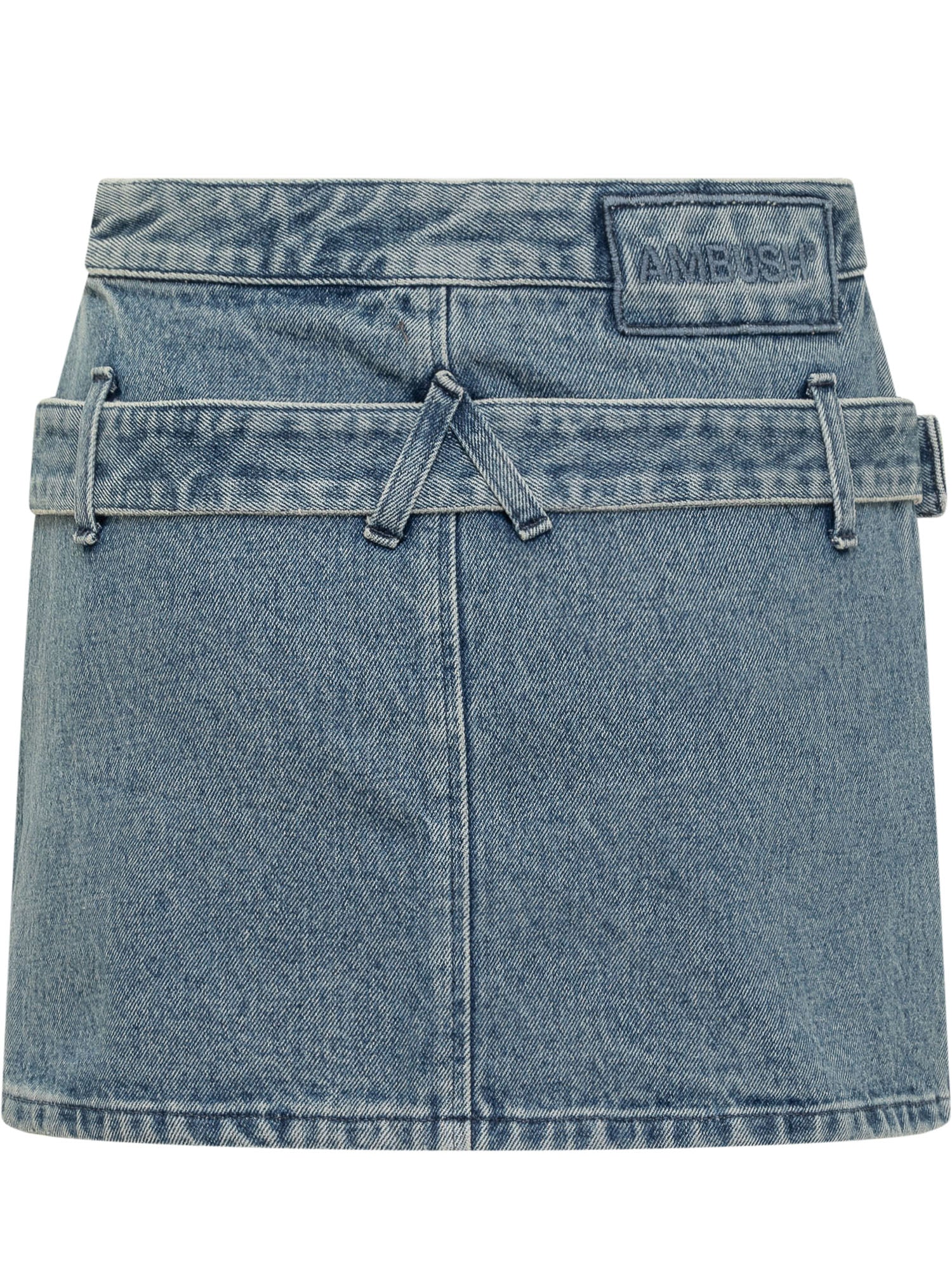 Mini gonna in jeans blu. Chiusura con zip laterale. Cintura in vita. Logo sul retro.
