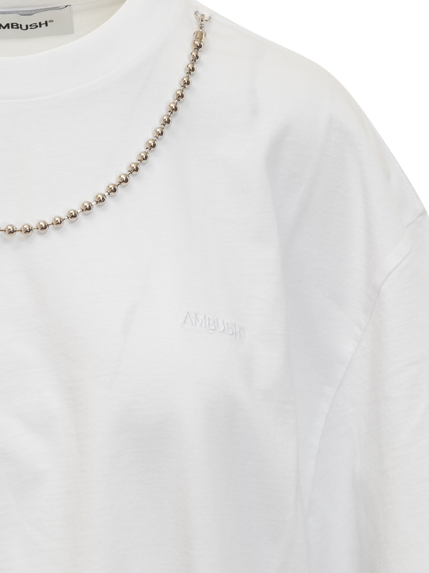 T-shirt maniche corte. Girocollo. Vestibilità over. Catena a sfera applicata. Logo ricamato.