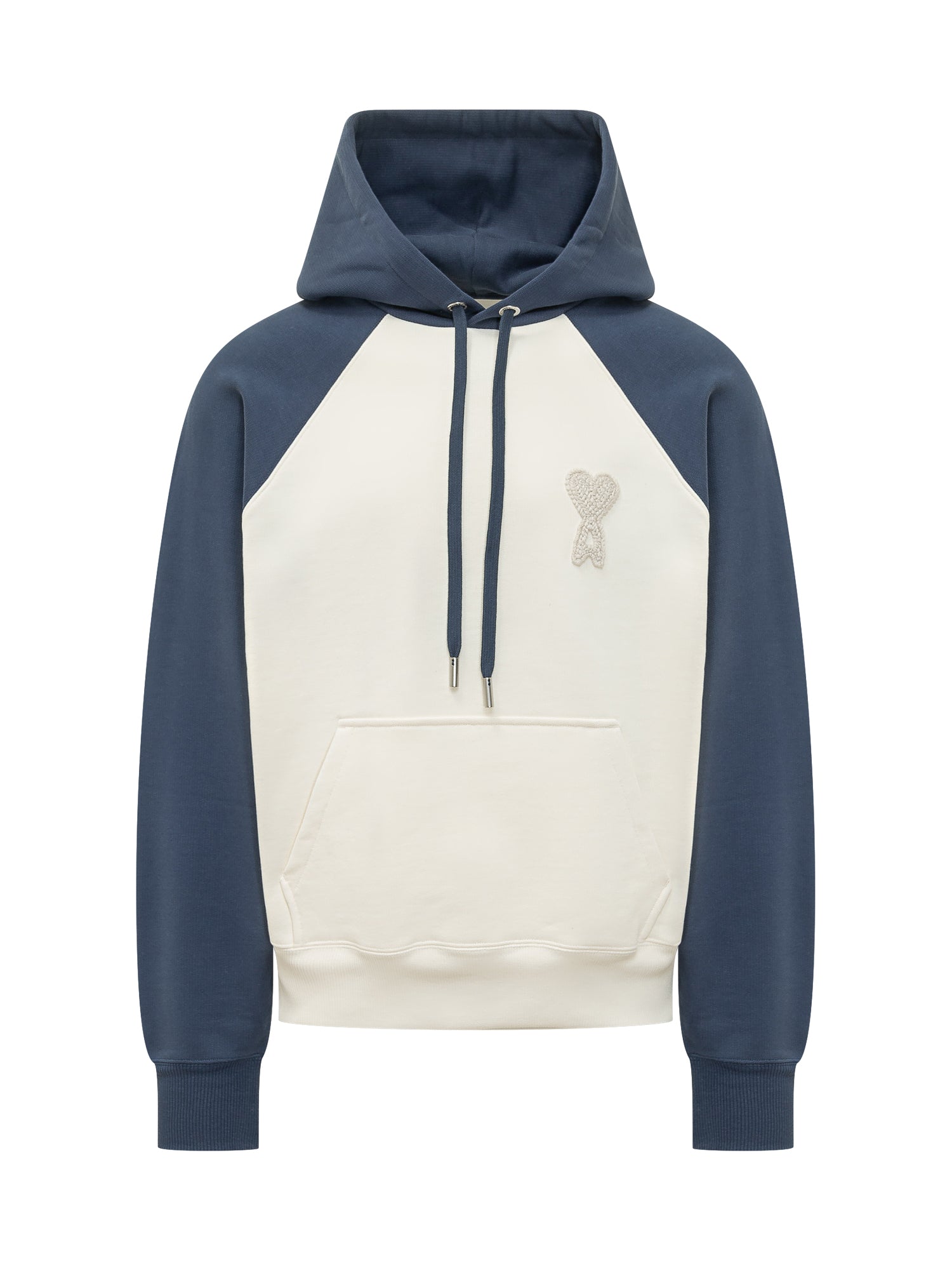 Felpa con cappuccio regolabile e maniche raglan a contrasto. Tasca frontale a marsupio e logo ricamato sul petto. Fondo e polsini a costine per una vestibilità definita.
