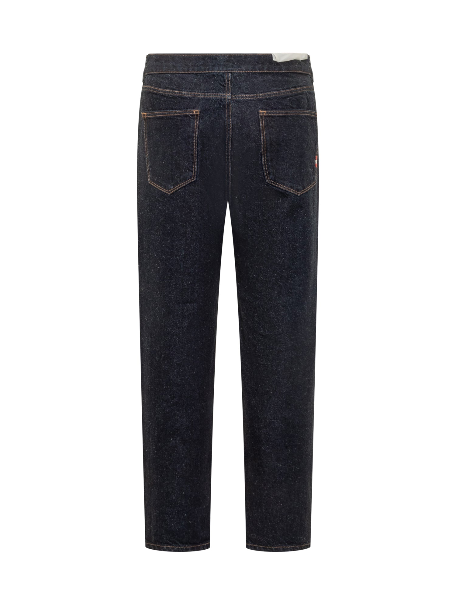 Jeans Amish da uomo in denim nero lavaggio scuro, con taglio slim fit e cuciture a contrasto.