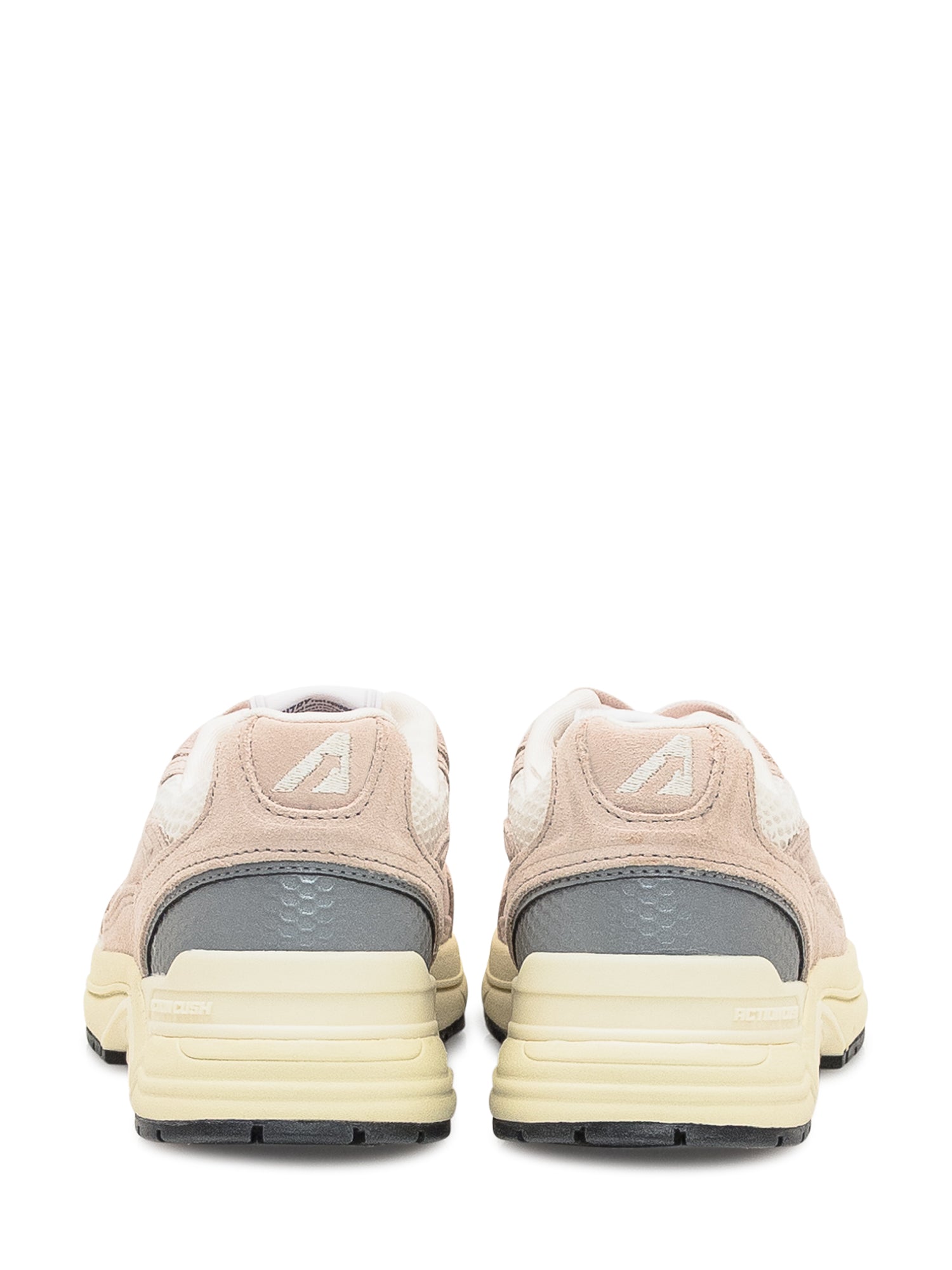 Sneakers Autry Hyperway Low in suede rosa e mesh bianco con dettagli grigi. Suola in gomma bicolore.