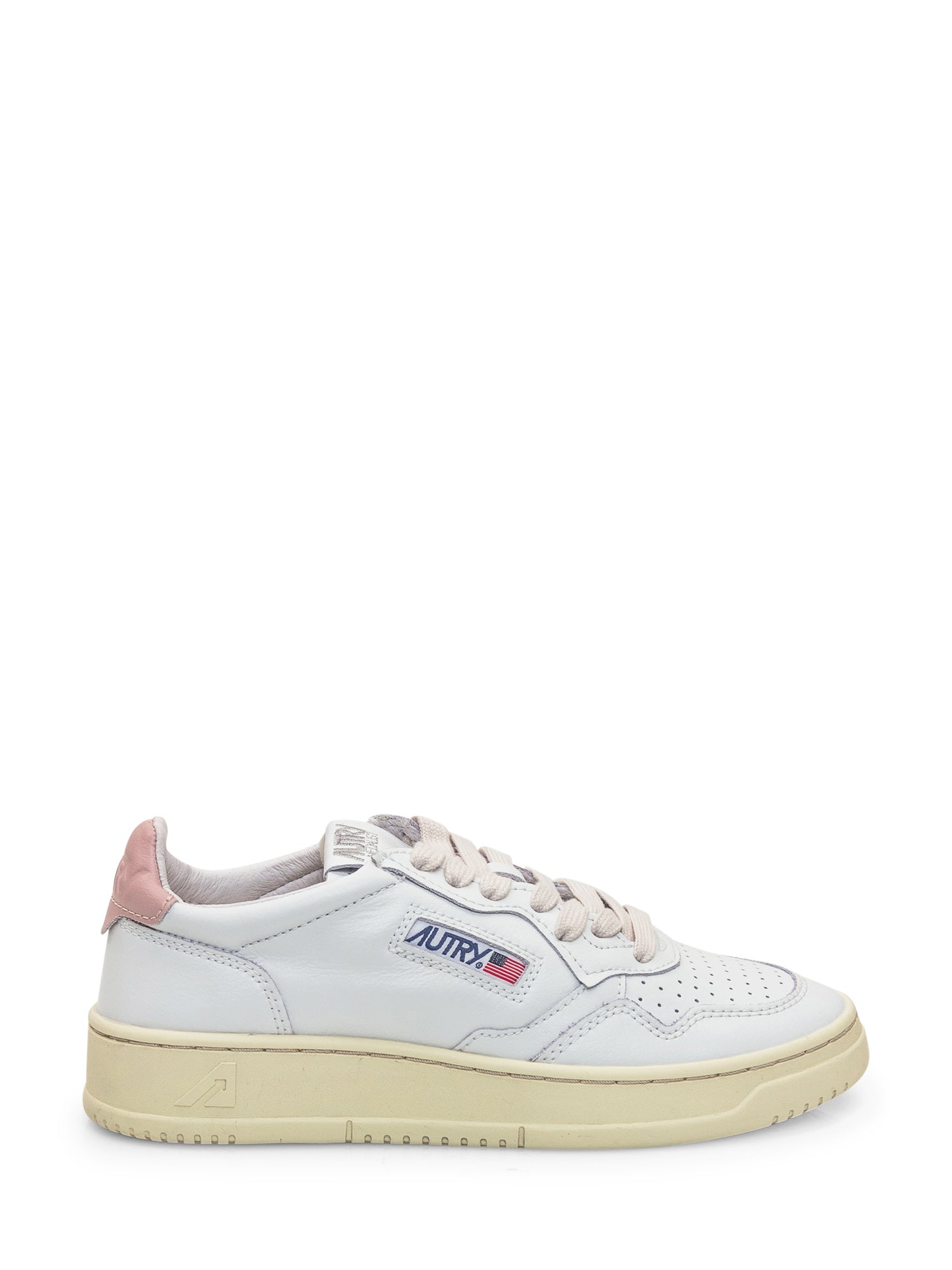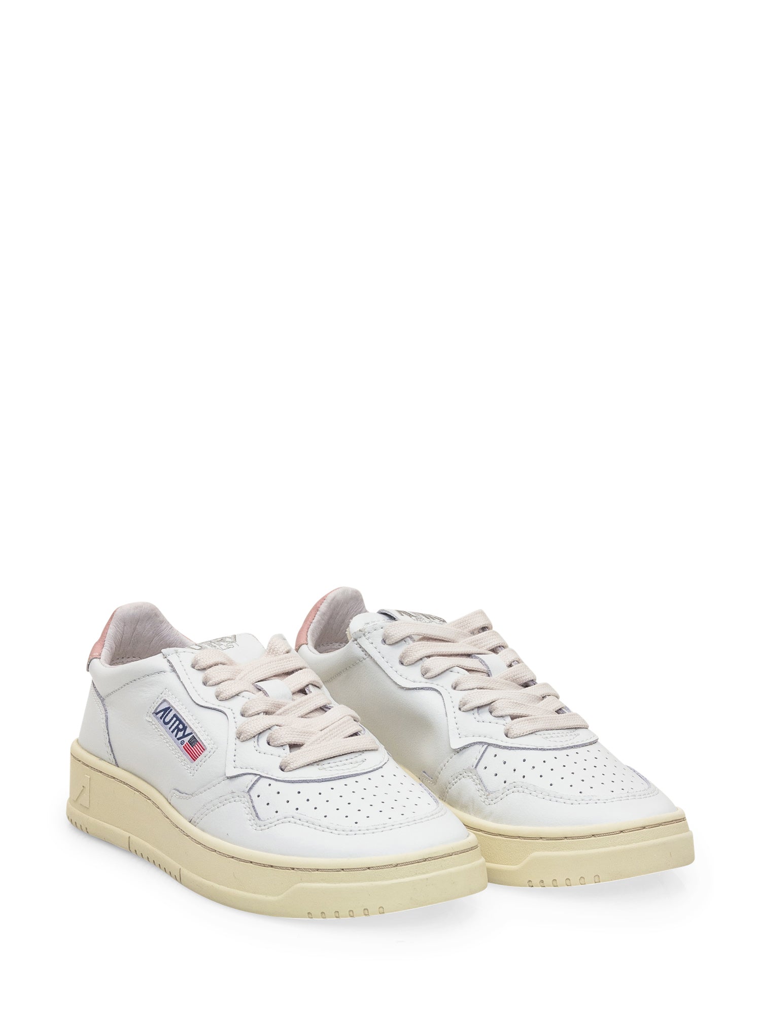Sneaker bassa bianca in pelle. Chiusura con lacci. Punta traforata. Logo su lato e linguetta. Tallone in contrasto.