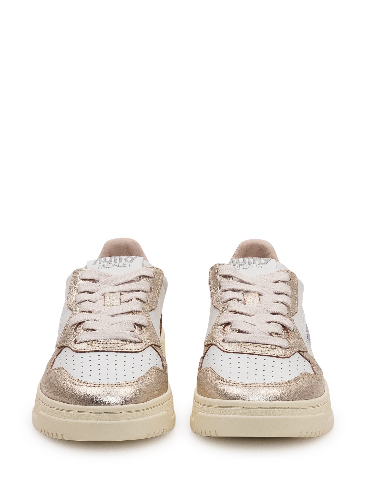Sneakers modello low top con chiusura con lacci e punta traforata. Inserti effetto metallizzato e logo laterale applicato. Suola platform con fondo strutturato, ideali per look sportivi e contemporanei.