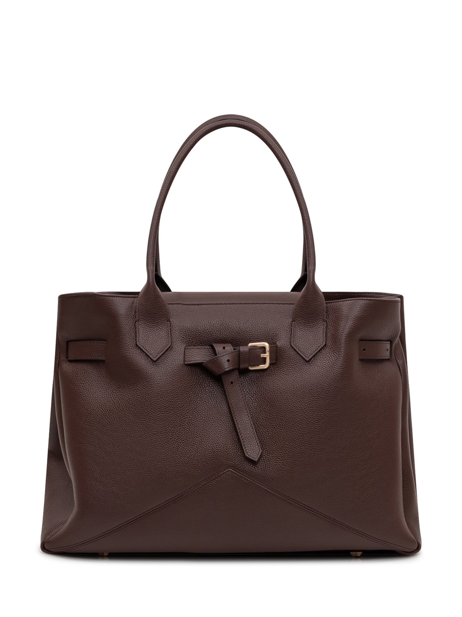 Borsa tote in pelle martellata con doppi manici e dettaglio frontale con cinturino e fibbia.Dimensioni: 41x31x14