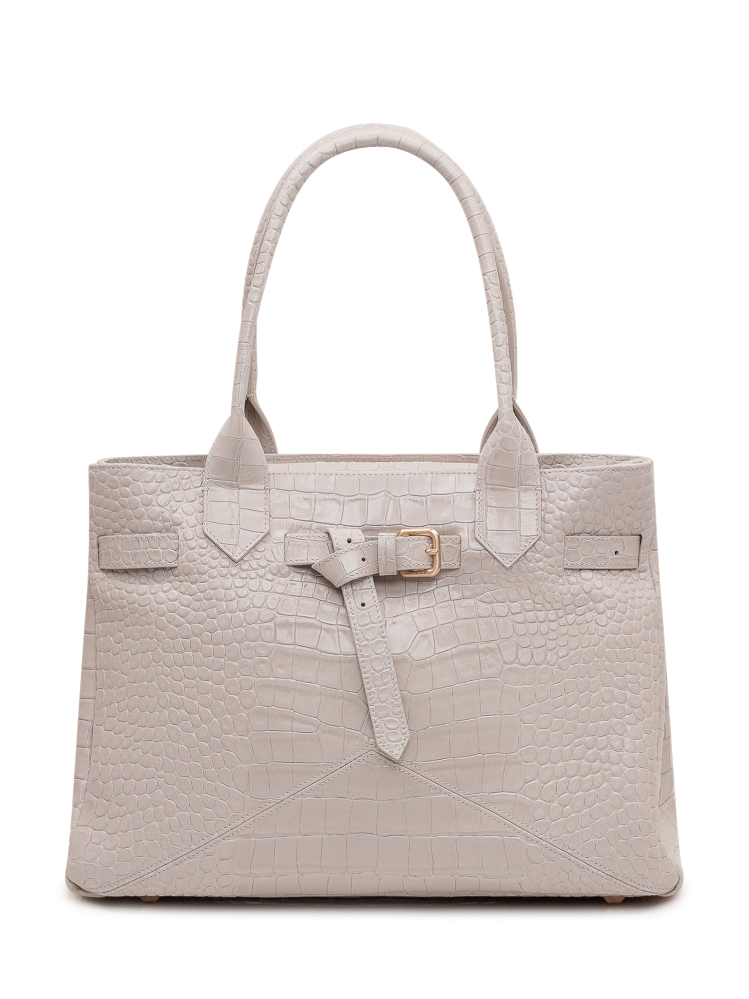 Borsa tote in pelle stampa coccodrillo con doppi manici e dettaglio frontale con cinturino e fibbia.Dimensioni: 37x26x10