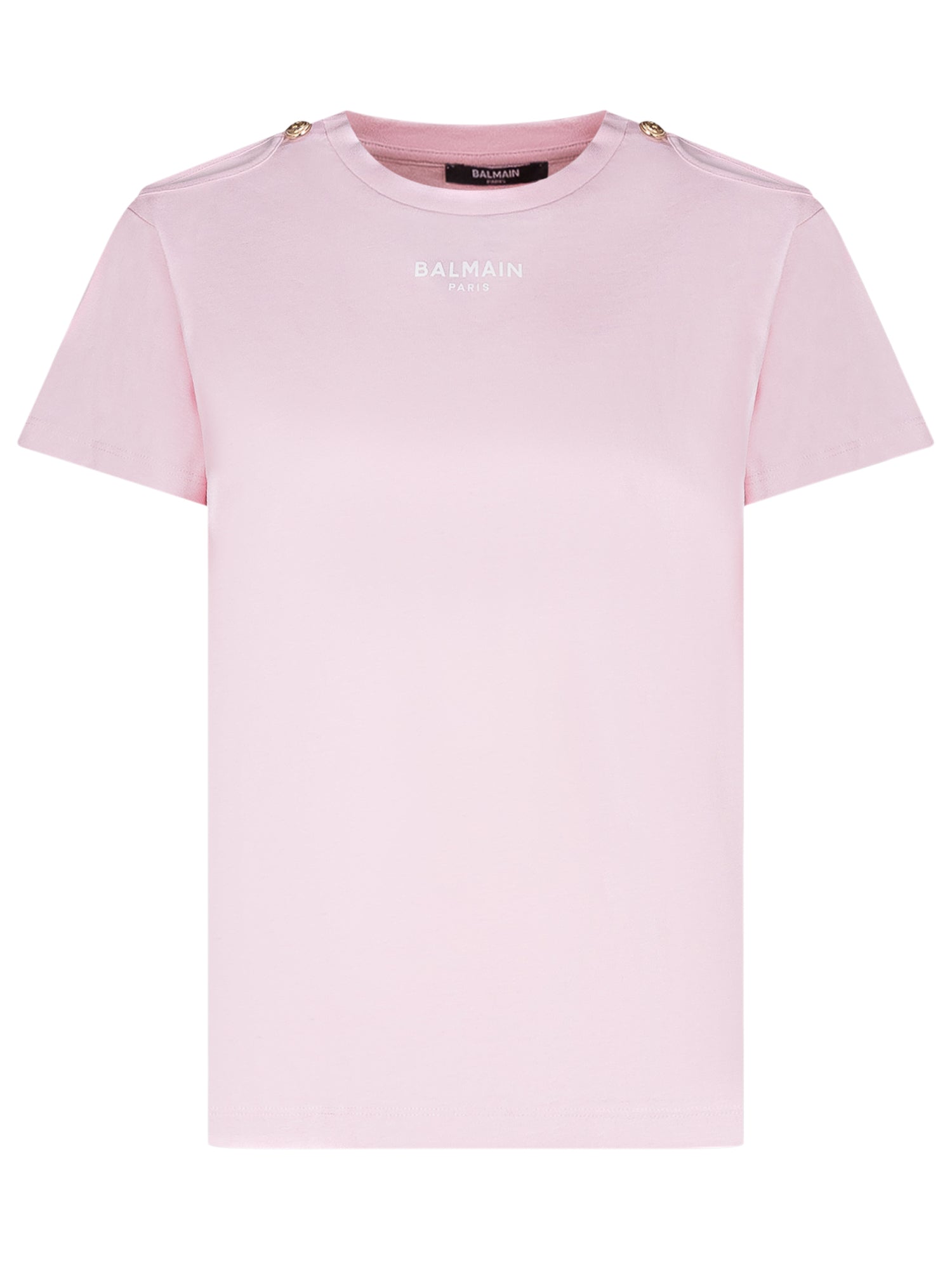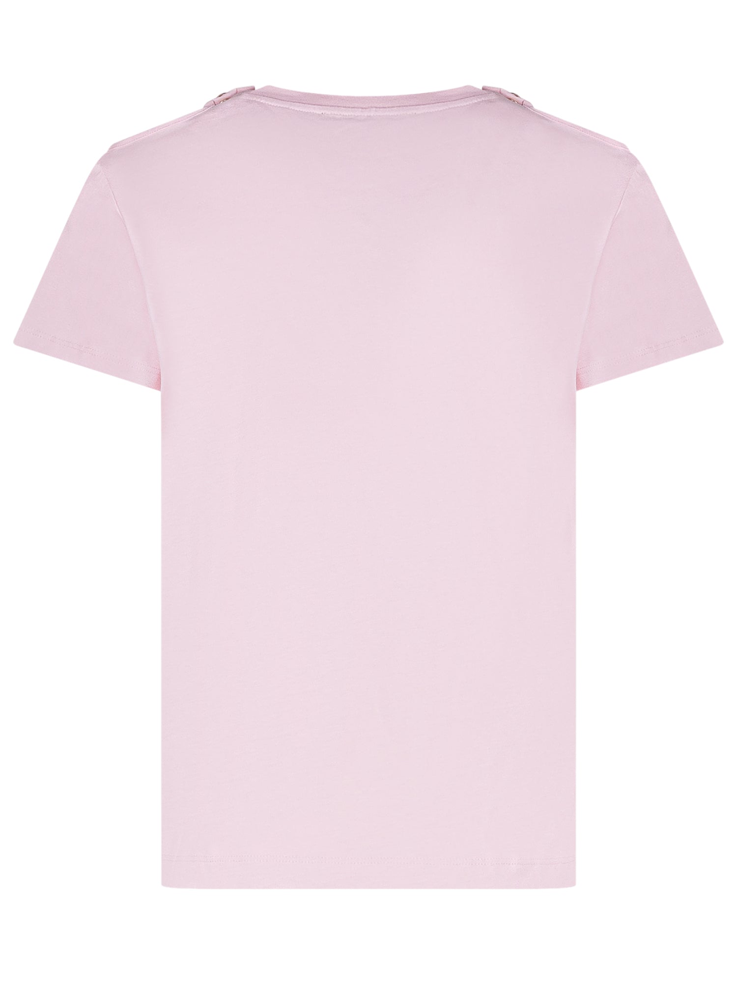 T-shirt con girocollo e maniche corte. Logo frontale a contrasto e bottoni decorativi applicati sulle spalle. Linea dritta e design pulito, ideale per un look contemporaneo e distintivo.