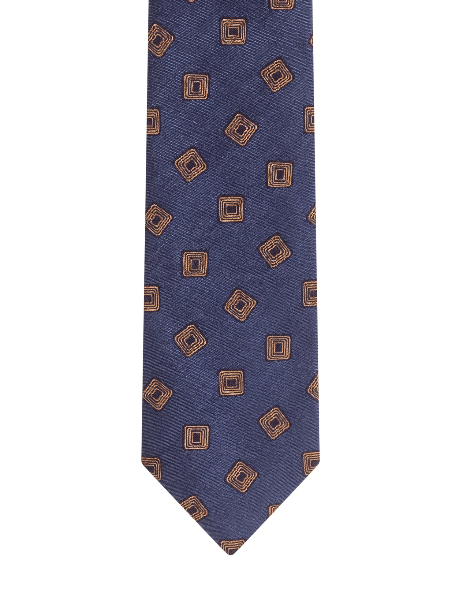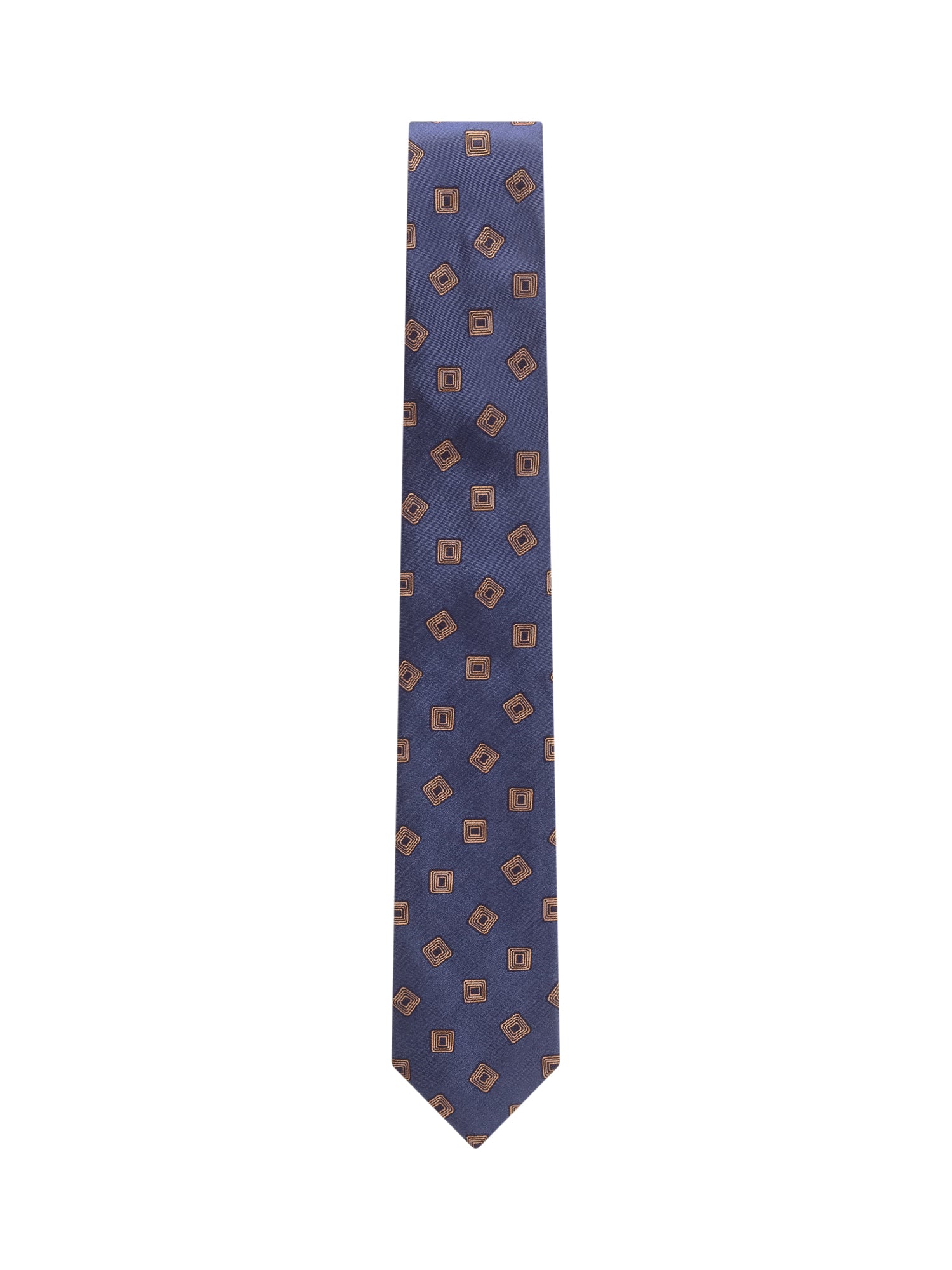 Cravatta blu Barbanapoli in seta con fantasia a quadri concentrici marroni.