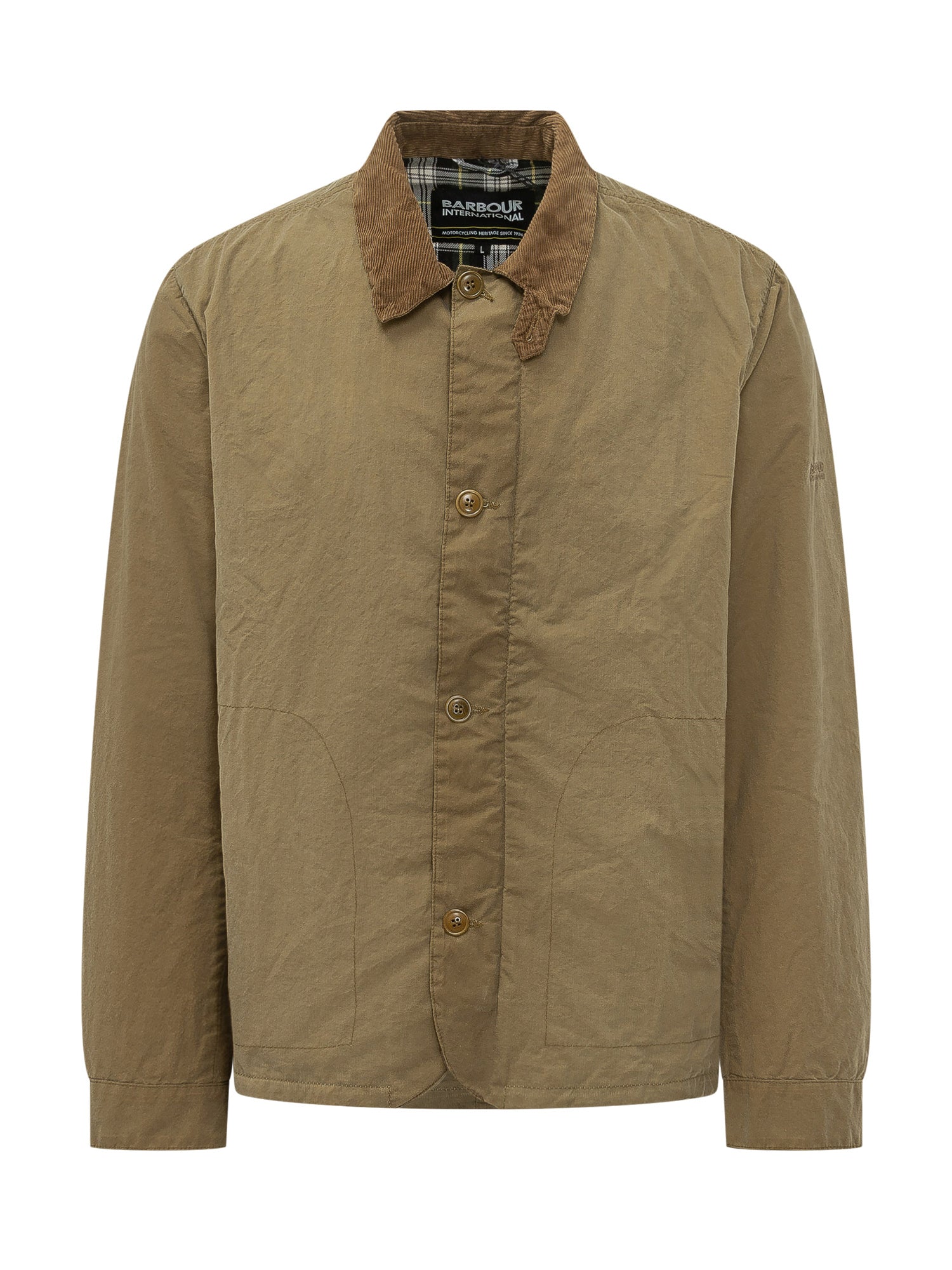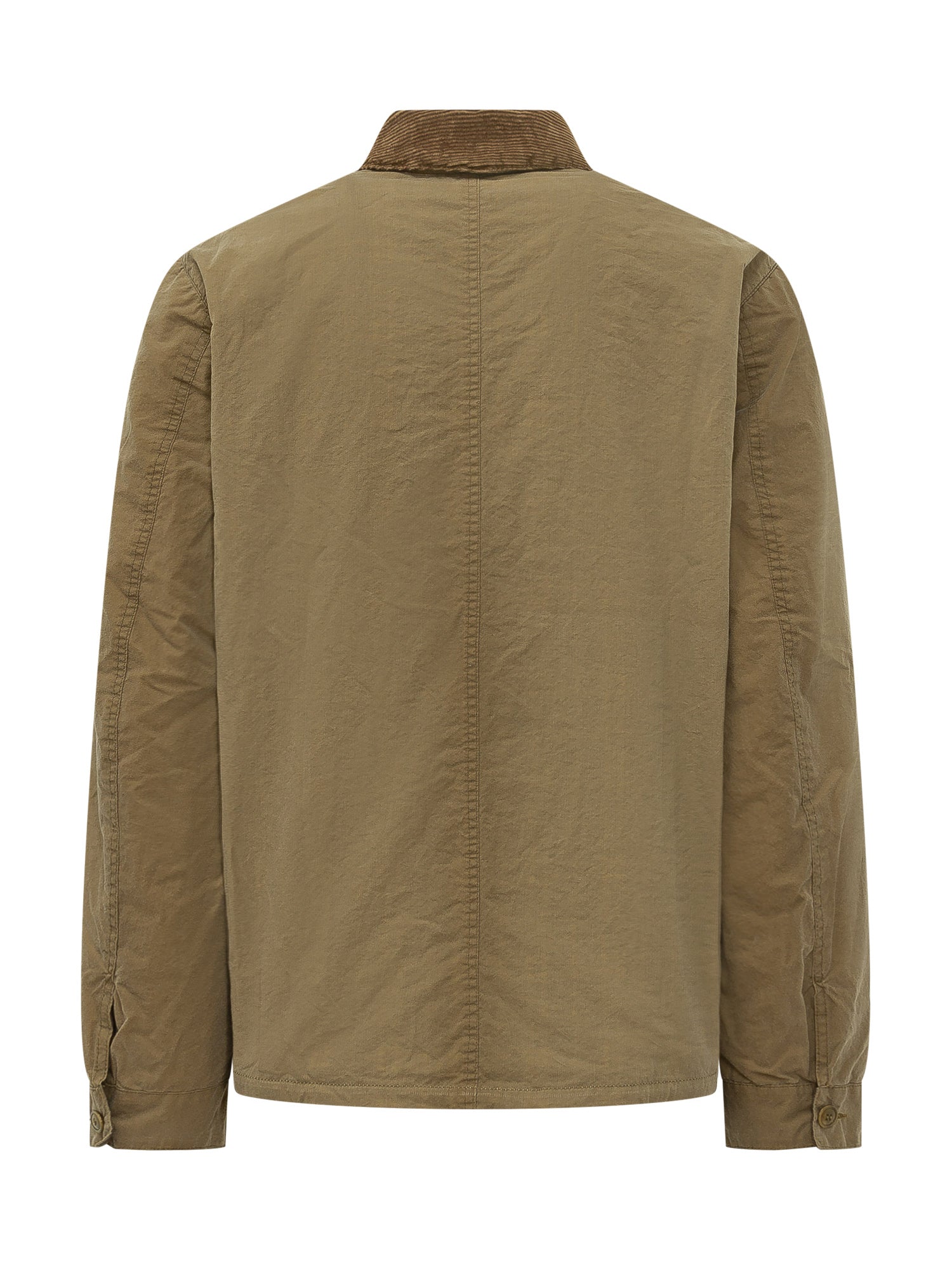 Giacca con colletto in velluto a coste e chiusura frontale con bottoni. Tasche laterali a filetto e linea regolare. Design essenziale adatto alla mezza stagione.
