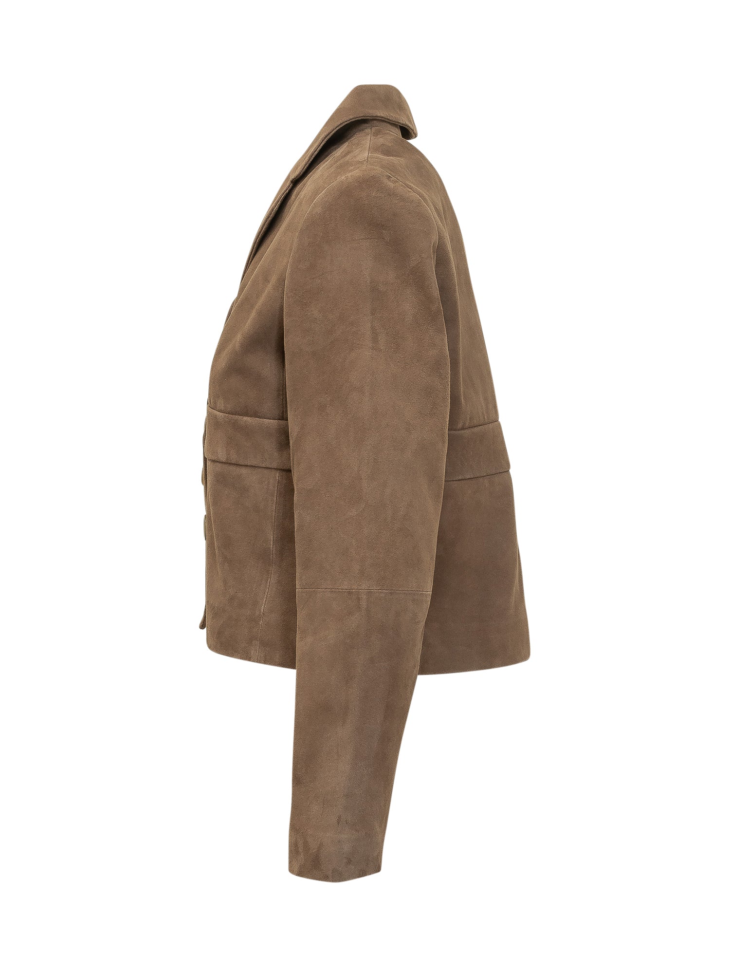 Giacca corta con rever classico e chiusura con bottoni frontali. Maniche lunghe e linea strutturata.