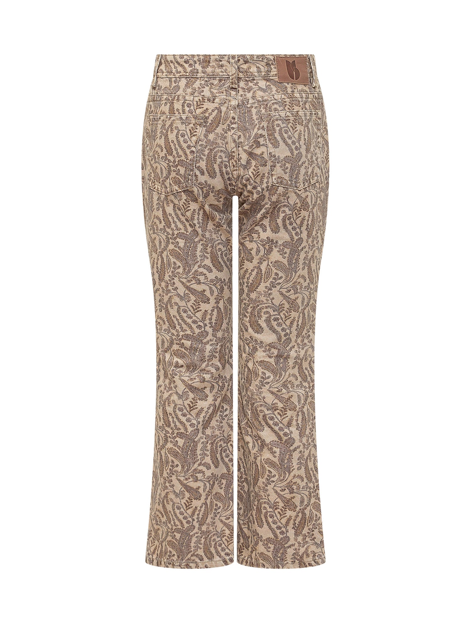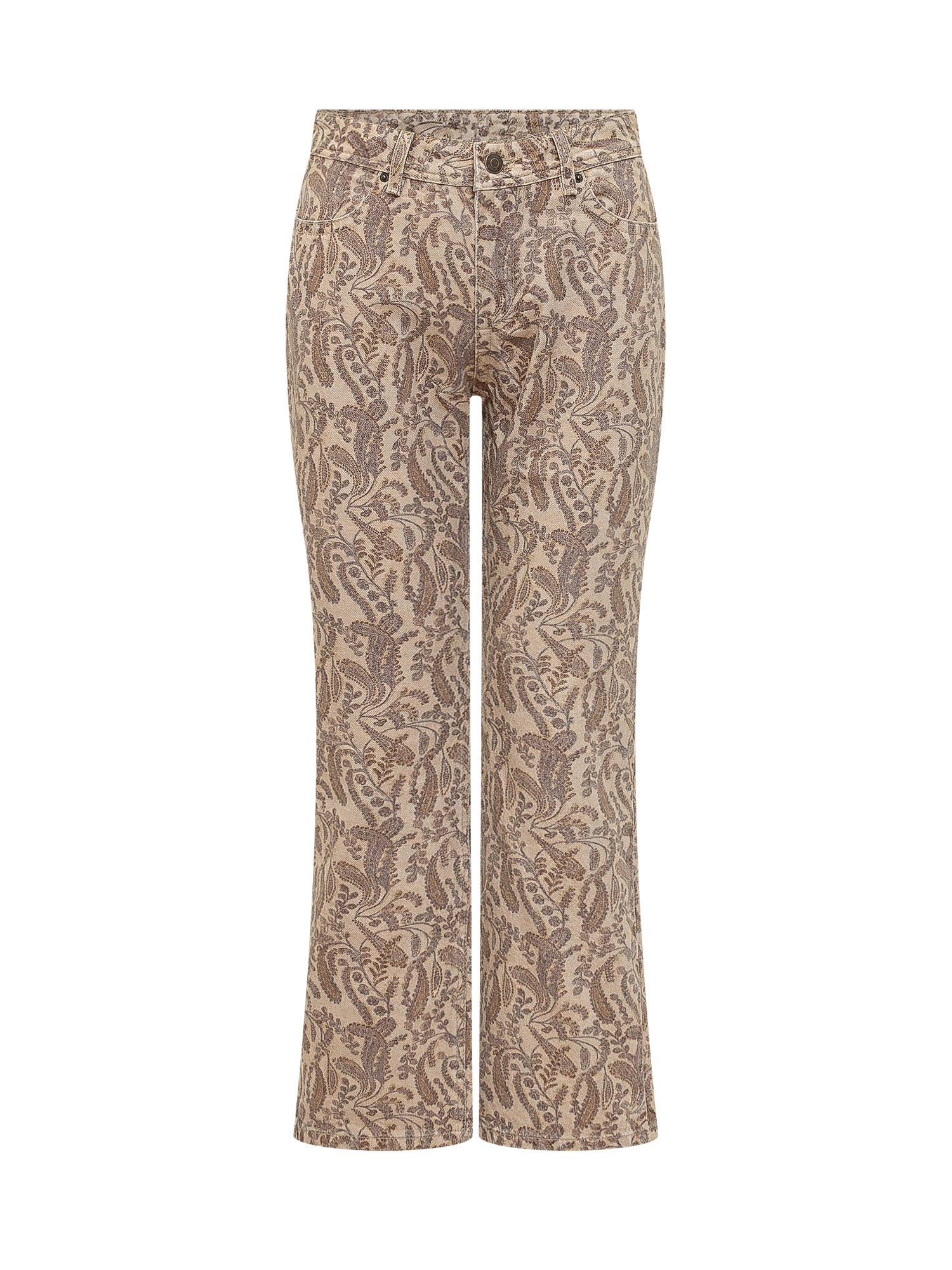 Jeans a gamba dritta con chiusura frontale e passanti in vita. Fantasia paisley all over e tasche laterali.
