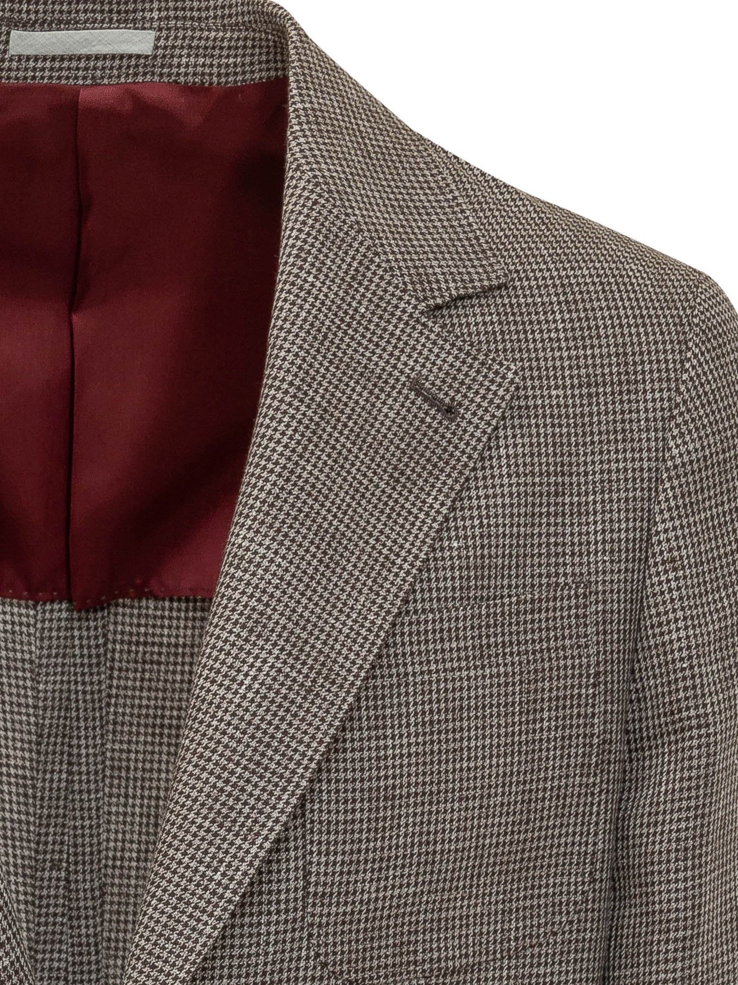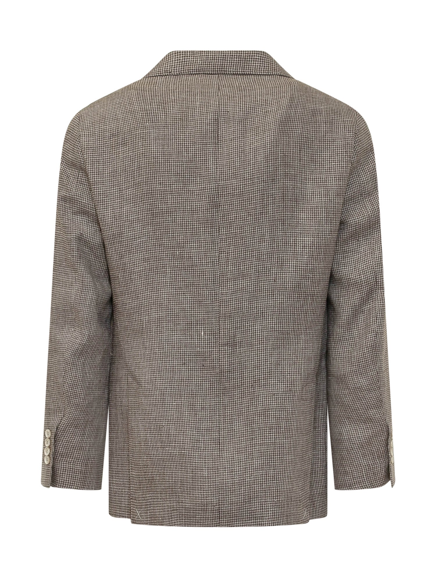 Blazer con rever classico, chiusura frontale con due bottoni, tasche anteriori con patta e taschino sul petto.