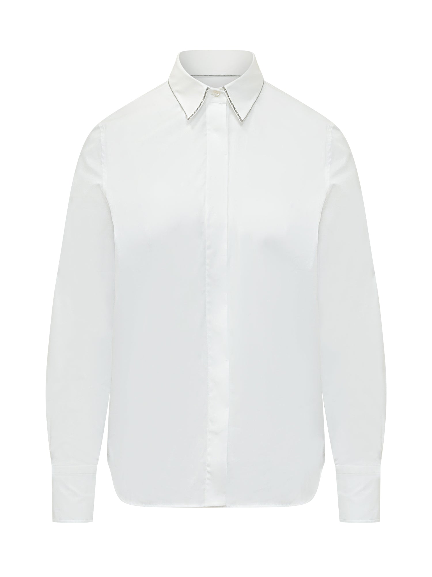 Camicia a manica lunga con colletto classico, chiusura con bottoni coperti, polsini regolabili, linea pulita e versatile.