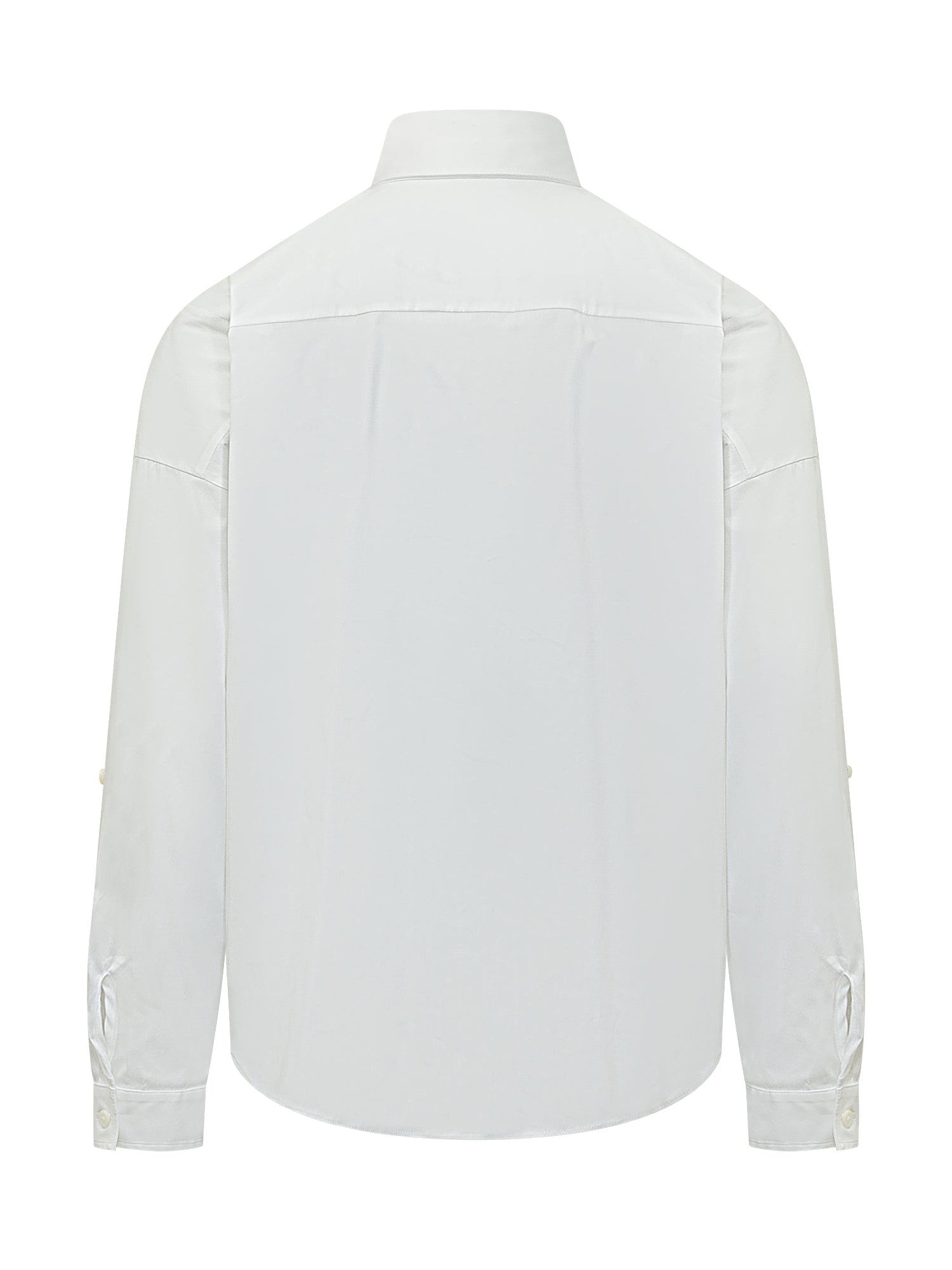 Camicia a manica lunga con colletto classico, chiusura con bottoni coperti, polsini regolabili, linea pulita e versatile
