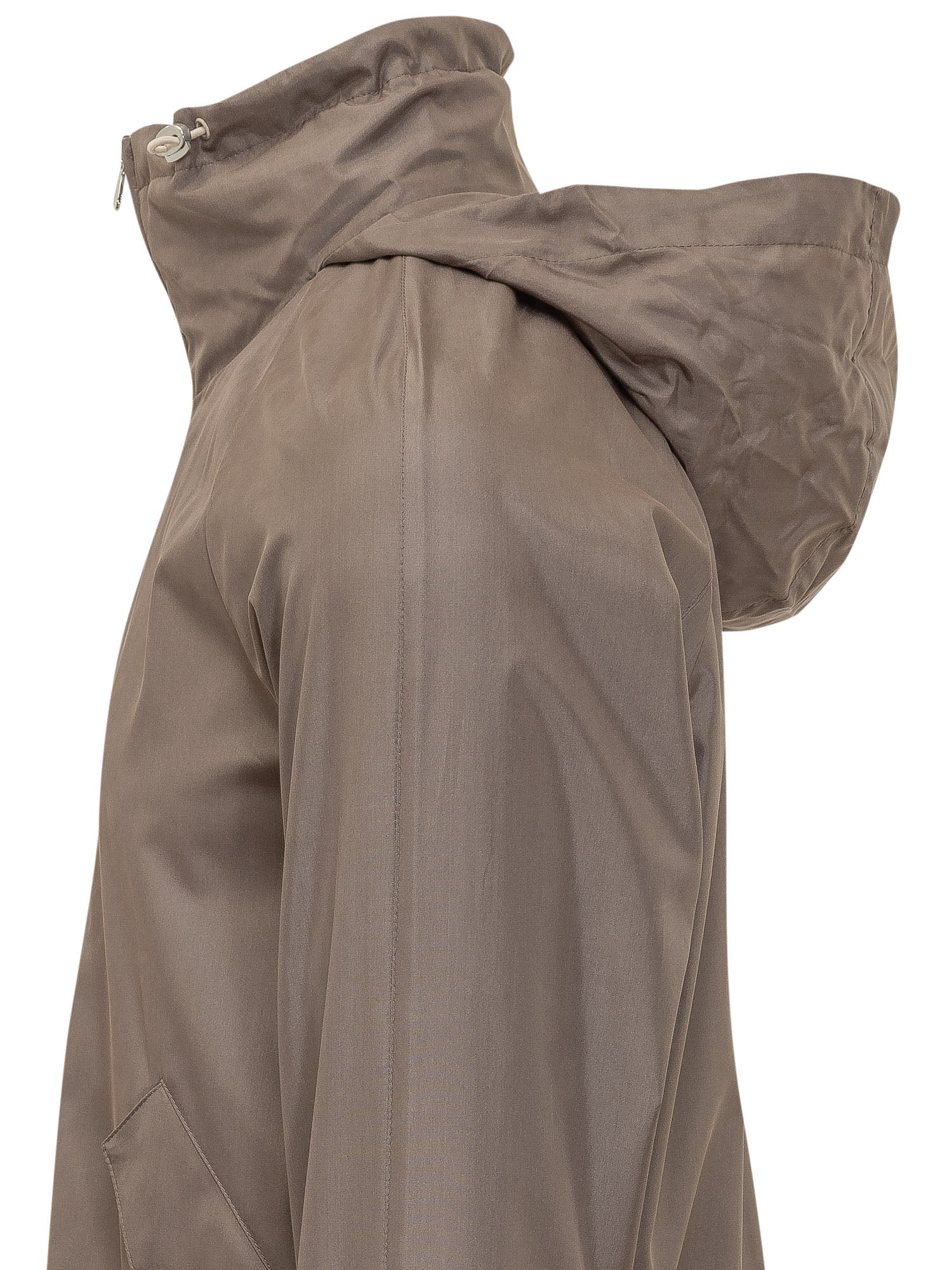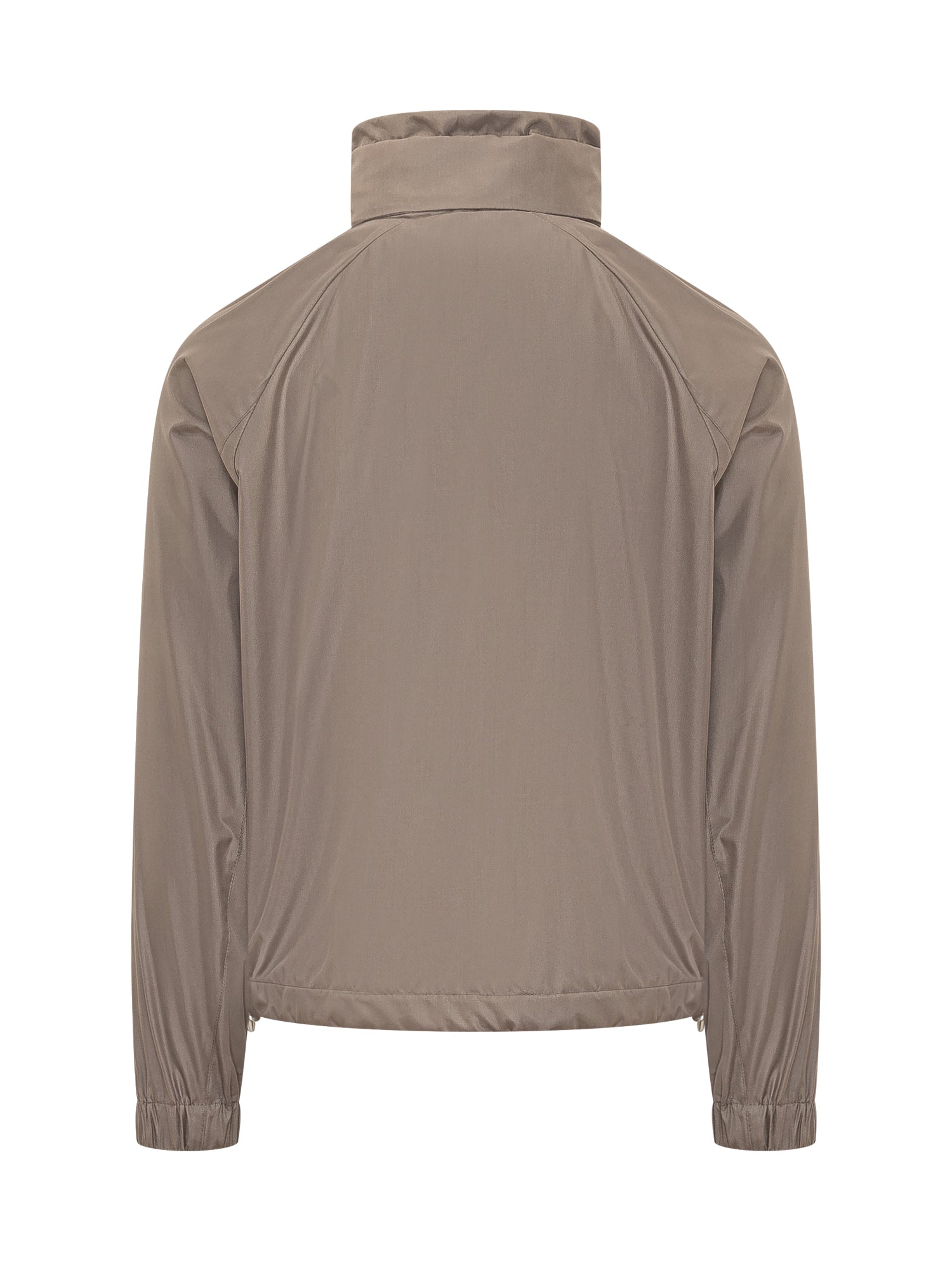 Giacca leggera con chiusura frontale a zip e collo alto con coulisse regolabile. Tasche laterali con patta e bottone a pressione, polsini elasticizzati e fondo leggermente arricciato. Design essenziale e funzionale perfetto per la mezza stagione.