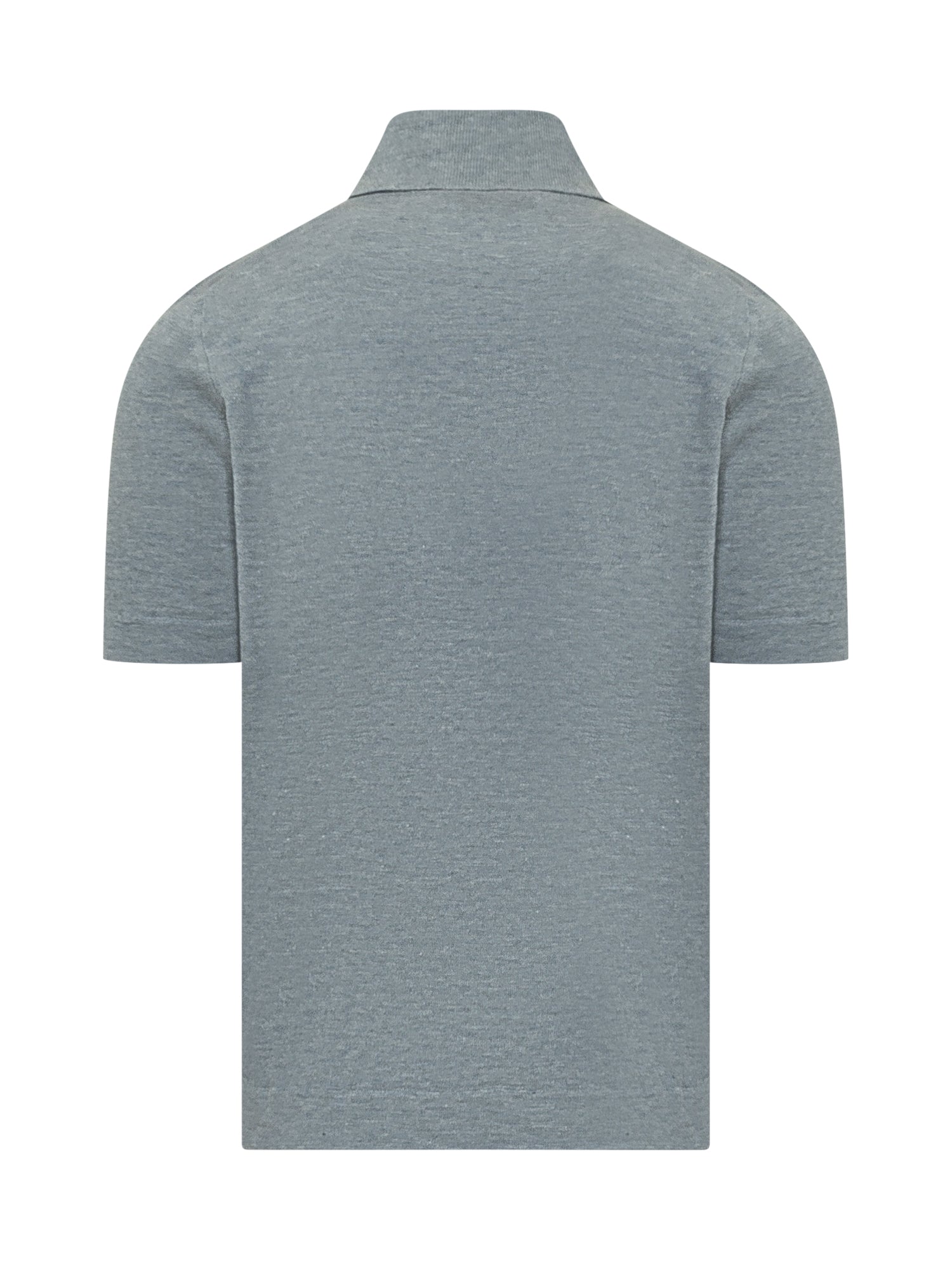 Polo a maniche corte con colletto classico, abbottonatura a tre bottoni, vestibilita regolare, finiture a costine su collo e fondo.