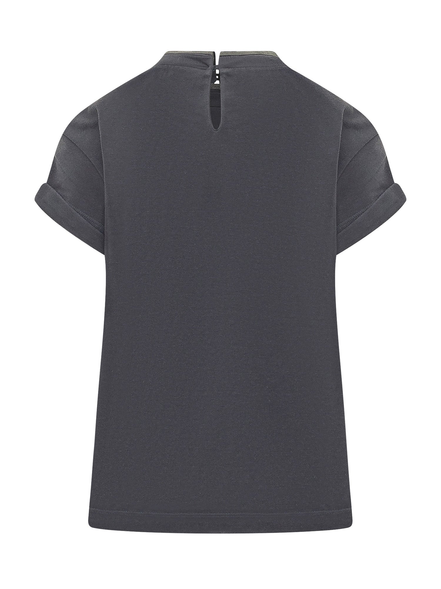 Top girocollo con maniche corte risvoltate e linea morbida. Struttura semplice.