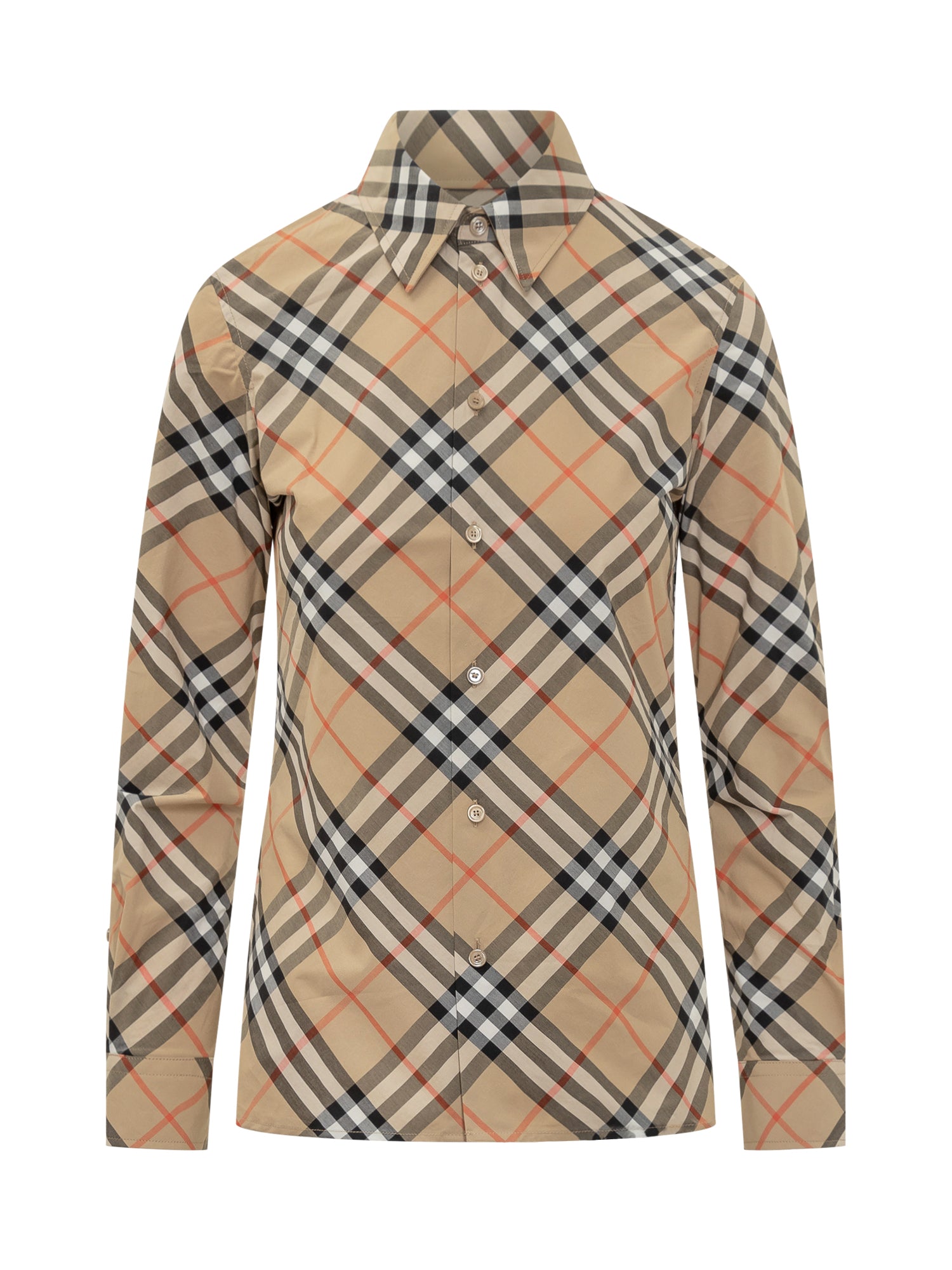 Colletto a punta. Chiusura con bottoni. Stampa check.