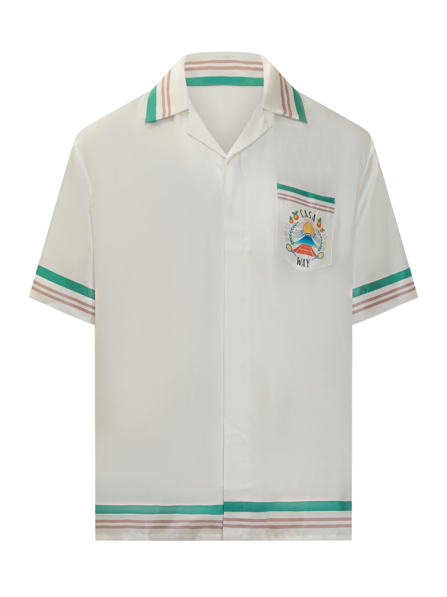 Camicia Casablanca in seta bianca con dettagli a righe e taschino decorato.