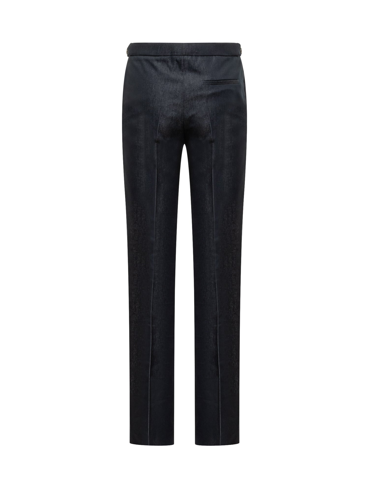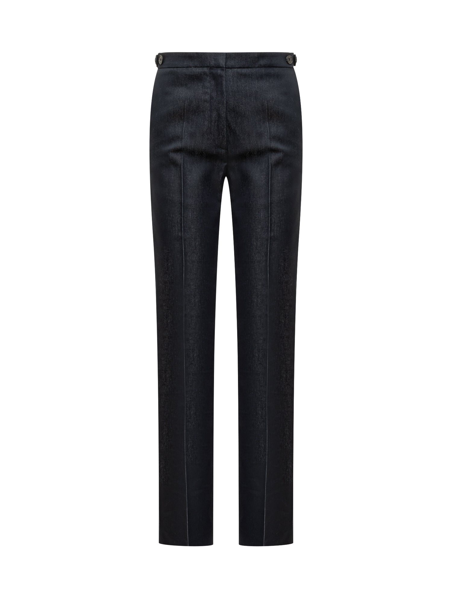 Pantaloni modello Grace di Darkpark in denim effetto satinato. Linea dritta con piega stirata e dettaglio di bottoni in vita.