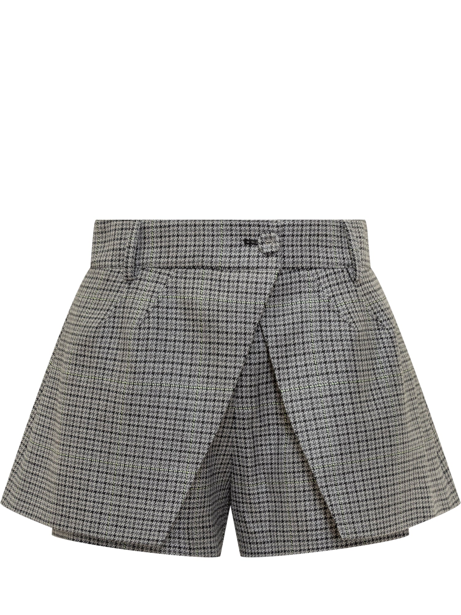 Shorts Des Phemmes in tessuto pied-de-poule con effetto gonna frontale. Taglio sartoriale e vita alta.