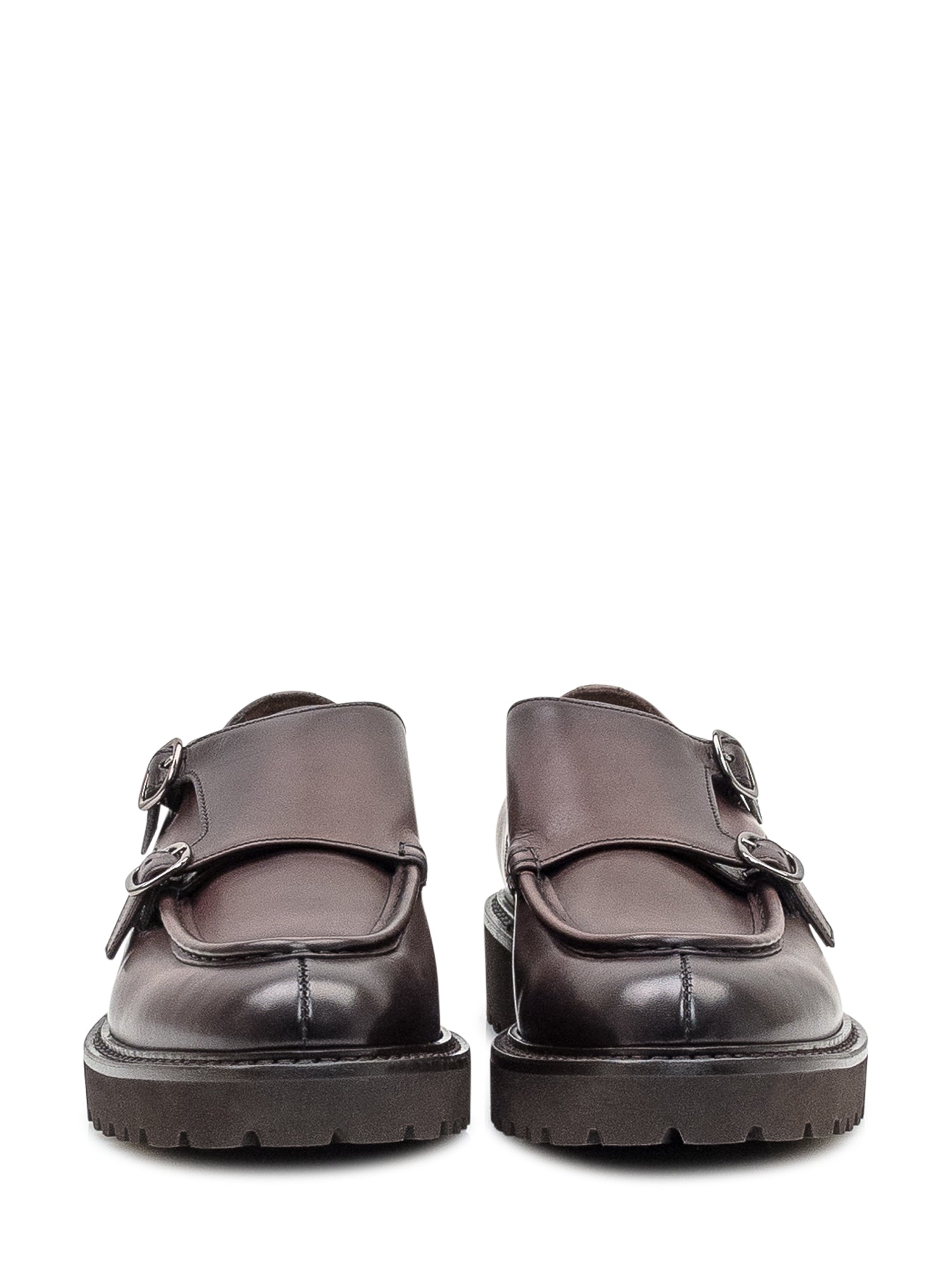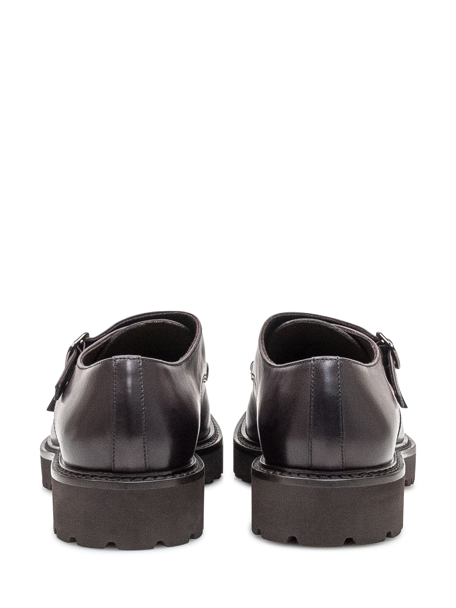 Scarpa double buckle dal design deciso con doppia fibbia laterale e cuciture a vista.Altezza platform: 3