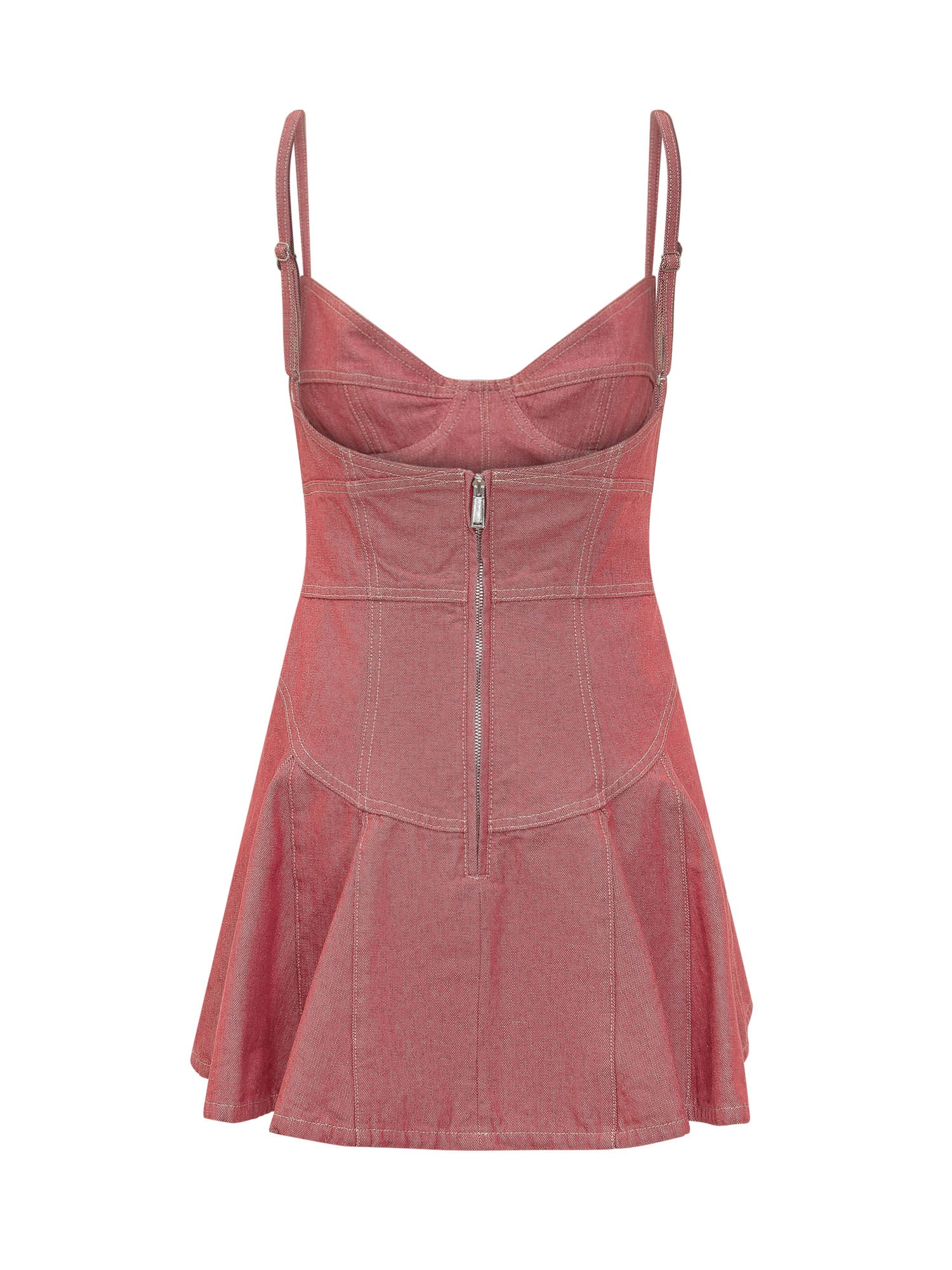Abito corto con corpino strutturato e spalline sottili regolabili. La gonna svasata valorizza la silhouette per un look femminile e disinvolto.