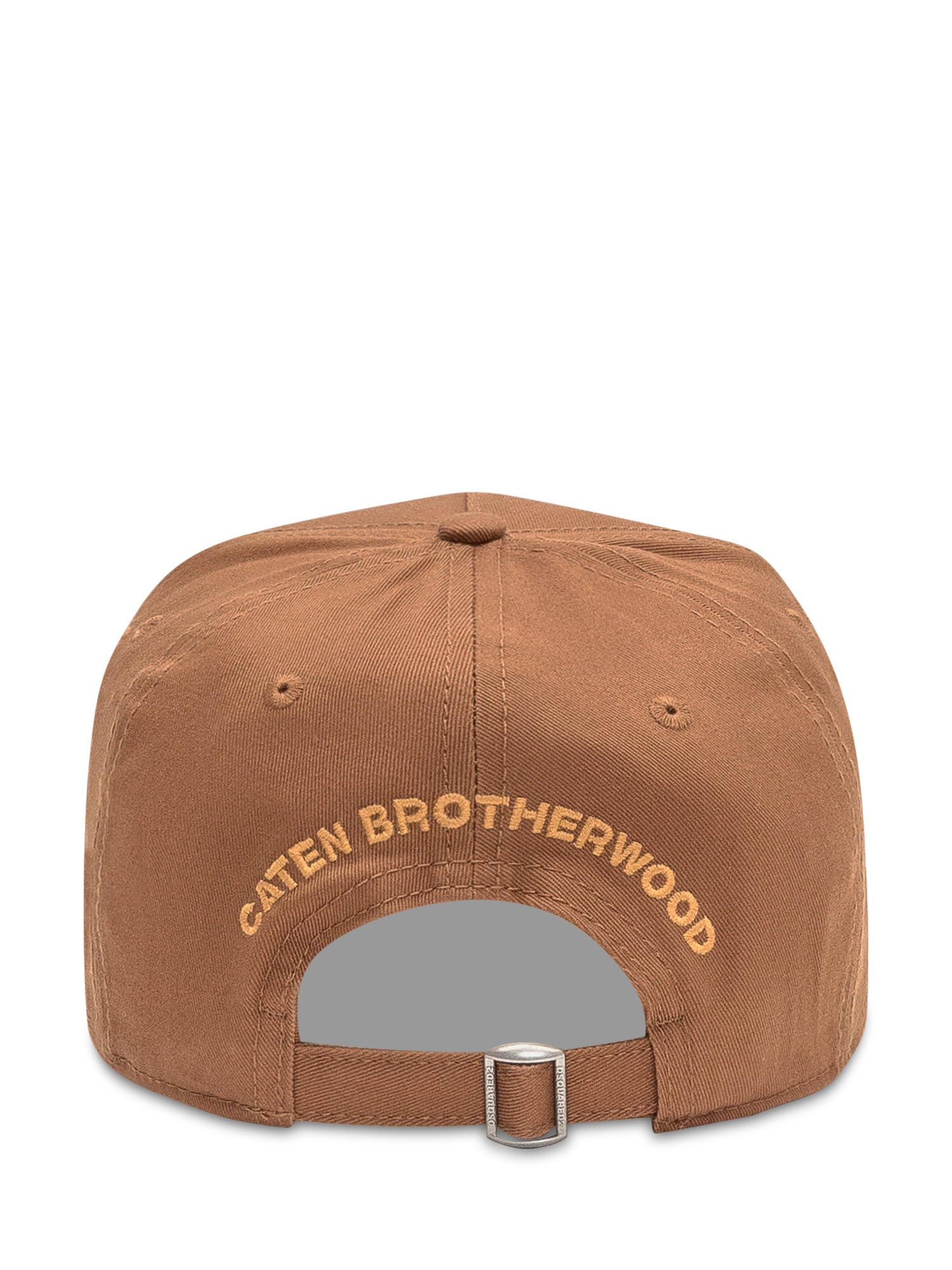 Cappellino cammello Dsquared2 con patch ricamata 1964 CORPS e orso. Look military e visiera curva effetto used.