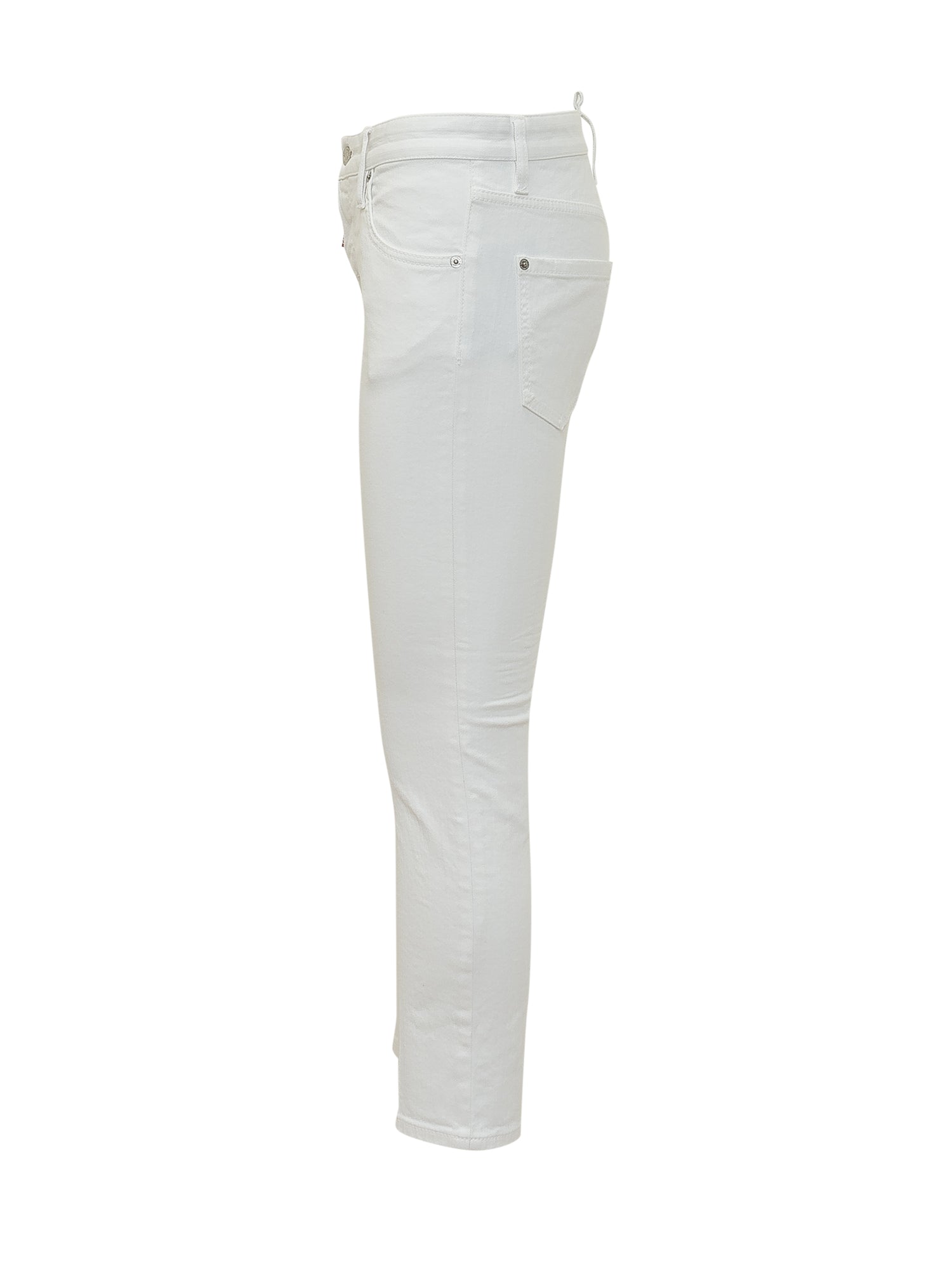 Jeans modello cinque tasche con passanti in vita e chiusura frontale con bottone e zip. Linea dritta e design essenziale adatto a look contemporanei e versatili per ogni occasione.