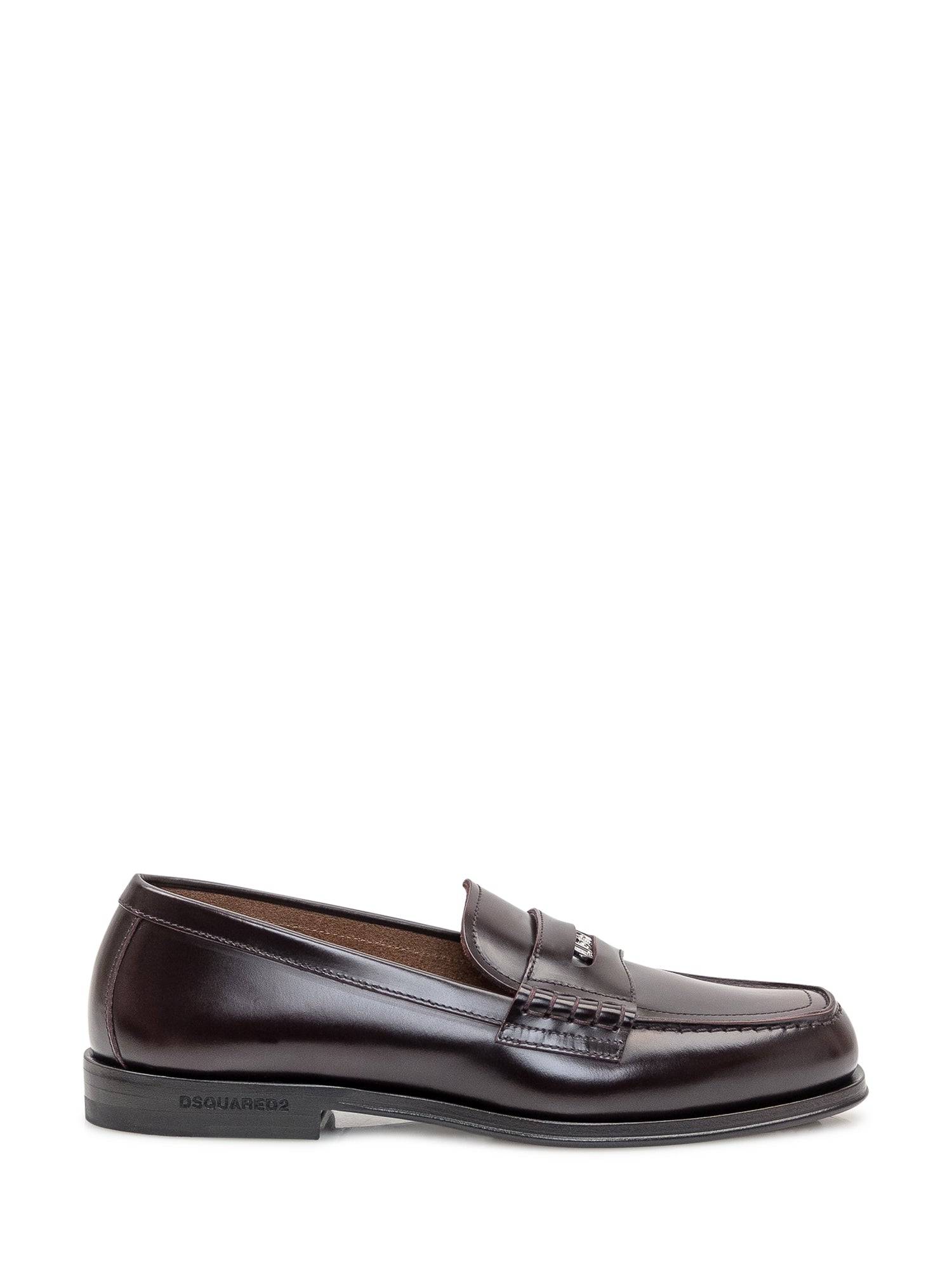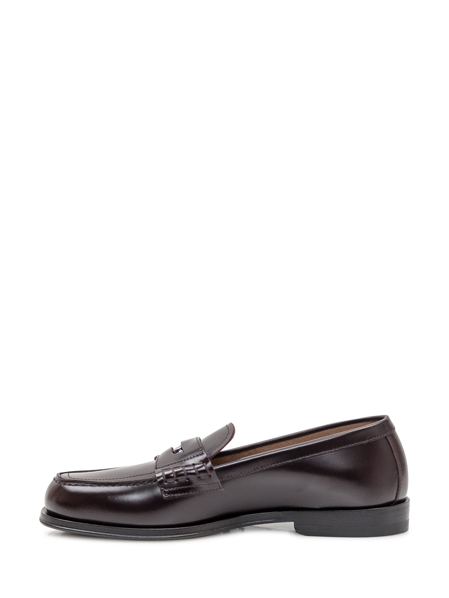 Mocassino bordeaux in pelle. Dettagli cuciti. Placca con logo sul davanti. Slot da un centesimo. Suola piatta in cuoio.