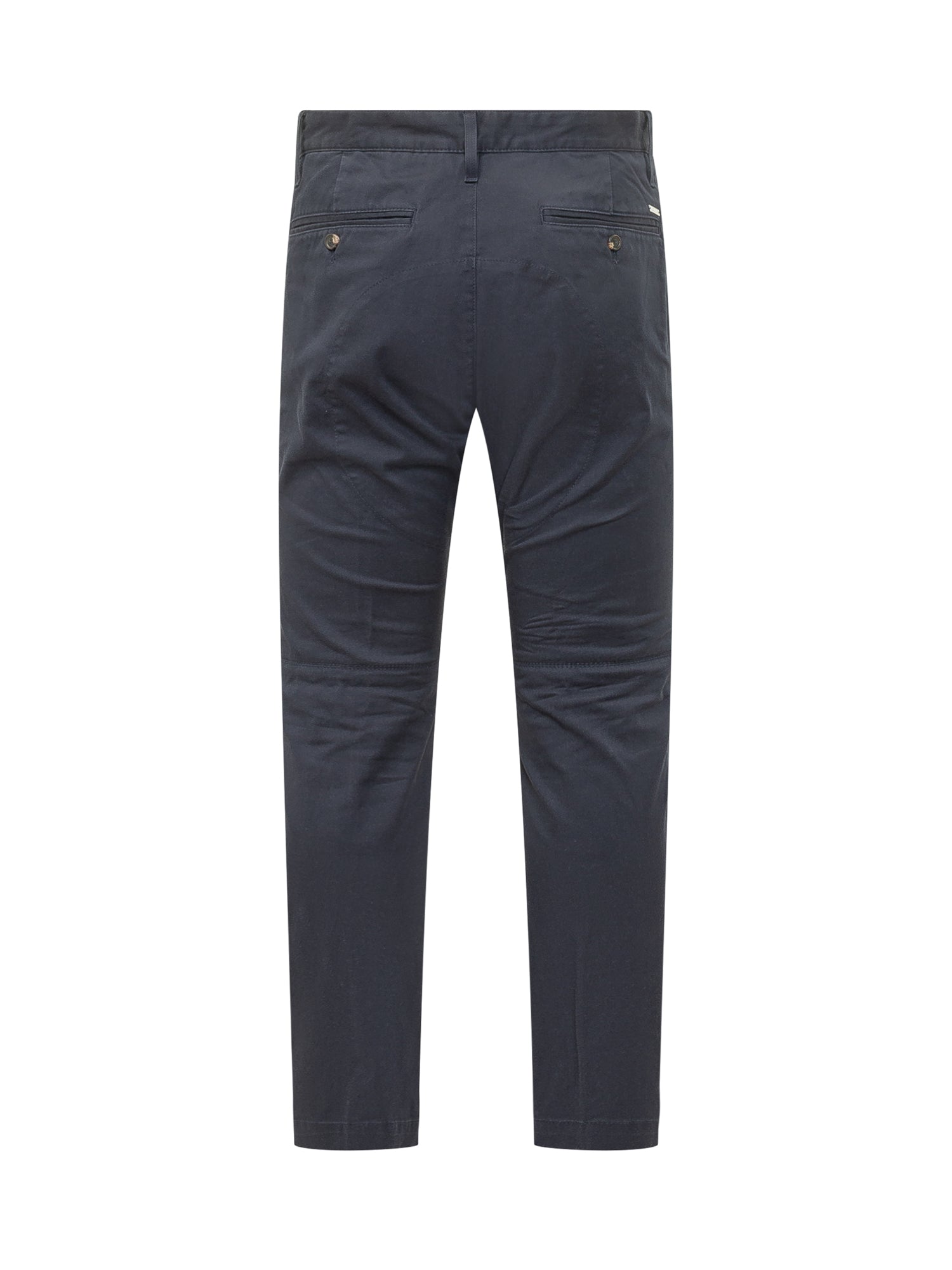 Pantalone chino slim fit con vita con passanti, chiusura con bottoni, tasche laterali.