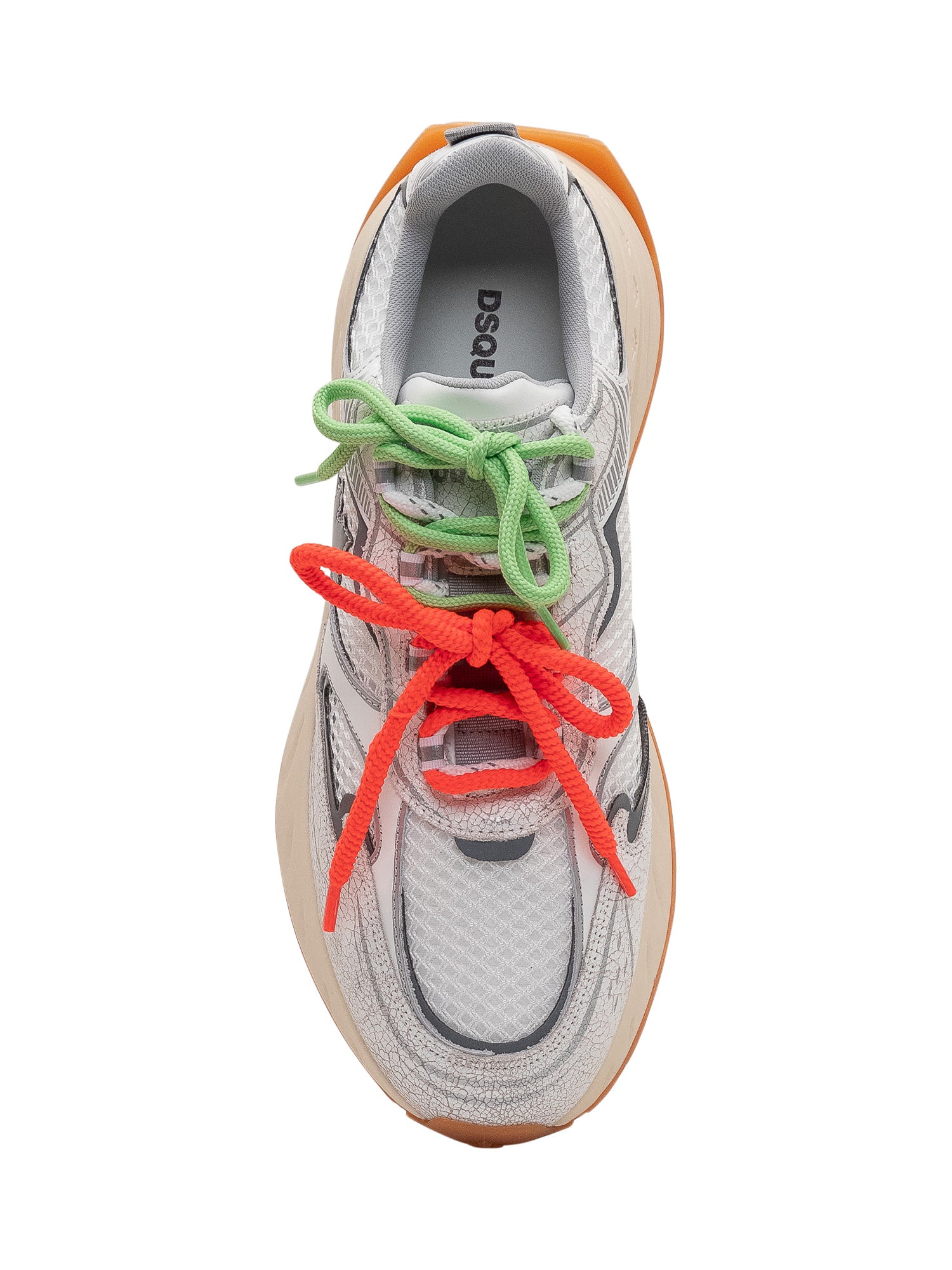 Sneaker dal design sportivo e contemporaneo, caratterizzata da effetto crackle, dettagli grafici a contrasto e lacci multicolor.