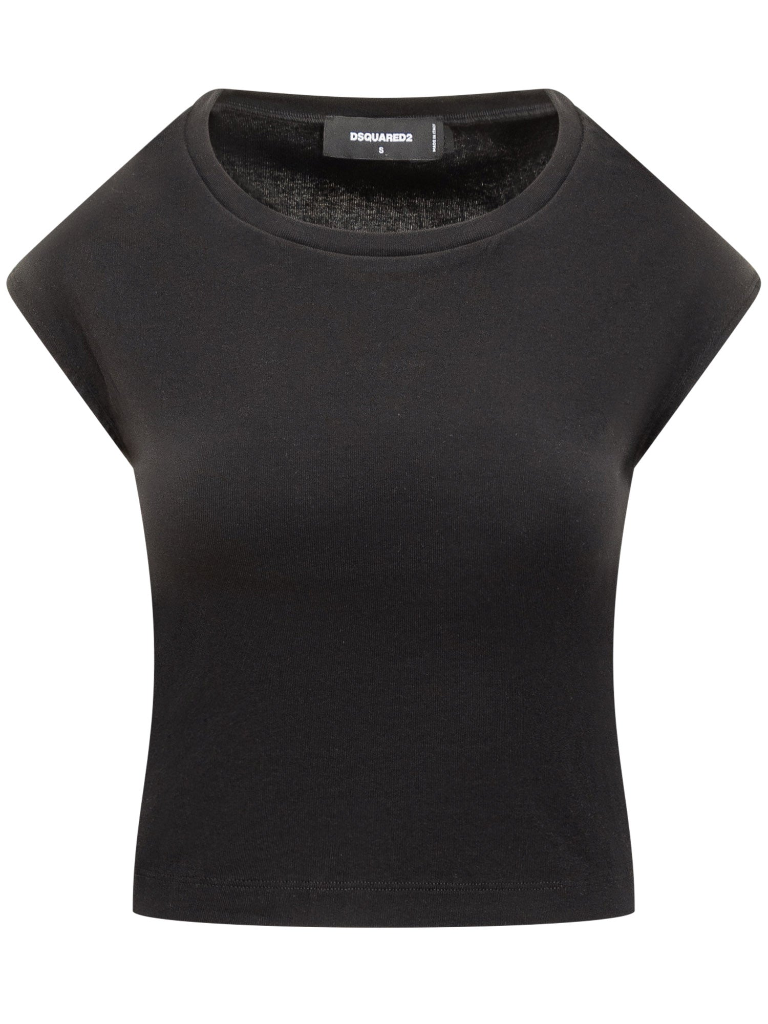 Top corto nero DSQUARED2 in jersey elasticizzato. Design minimal a maniche corte con scollo rotondo.