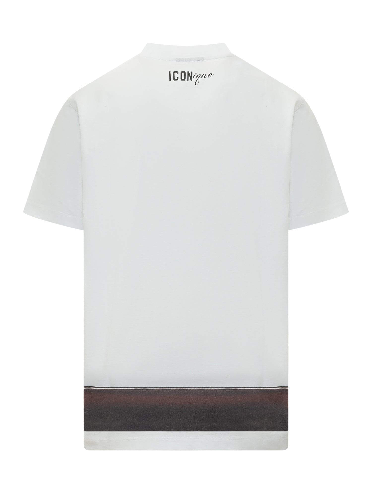T-shirt a maniche corte con girocollo e vestibilità loose. Modello con stampa grafica effetto cintura sul fondo.