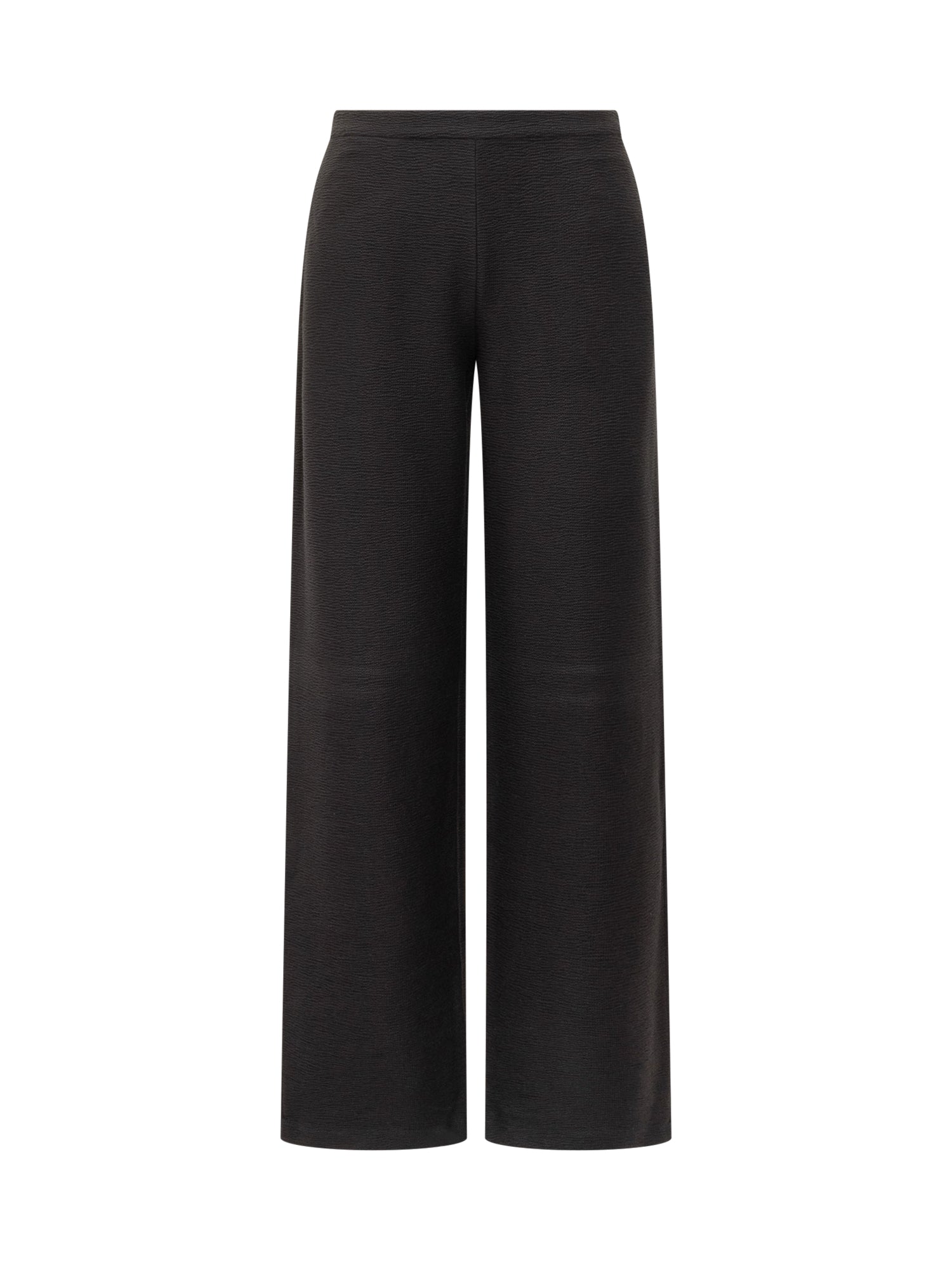 Pantaloni neri a gamba larga Exterior, realizzati in tessuto leggero con texture raffinata.