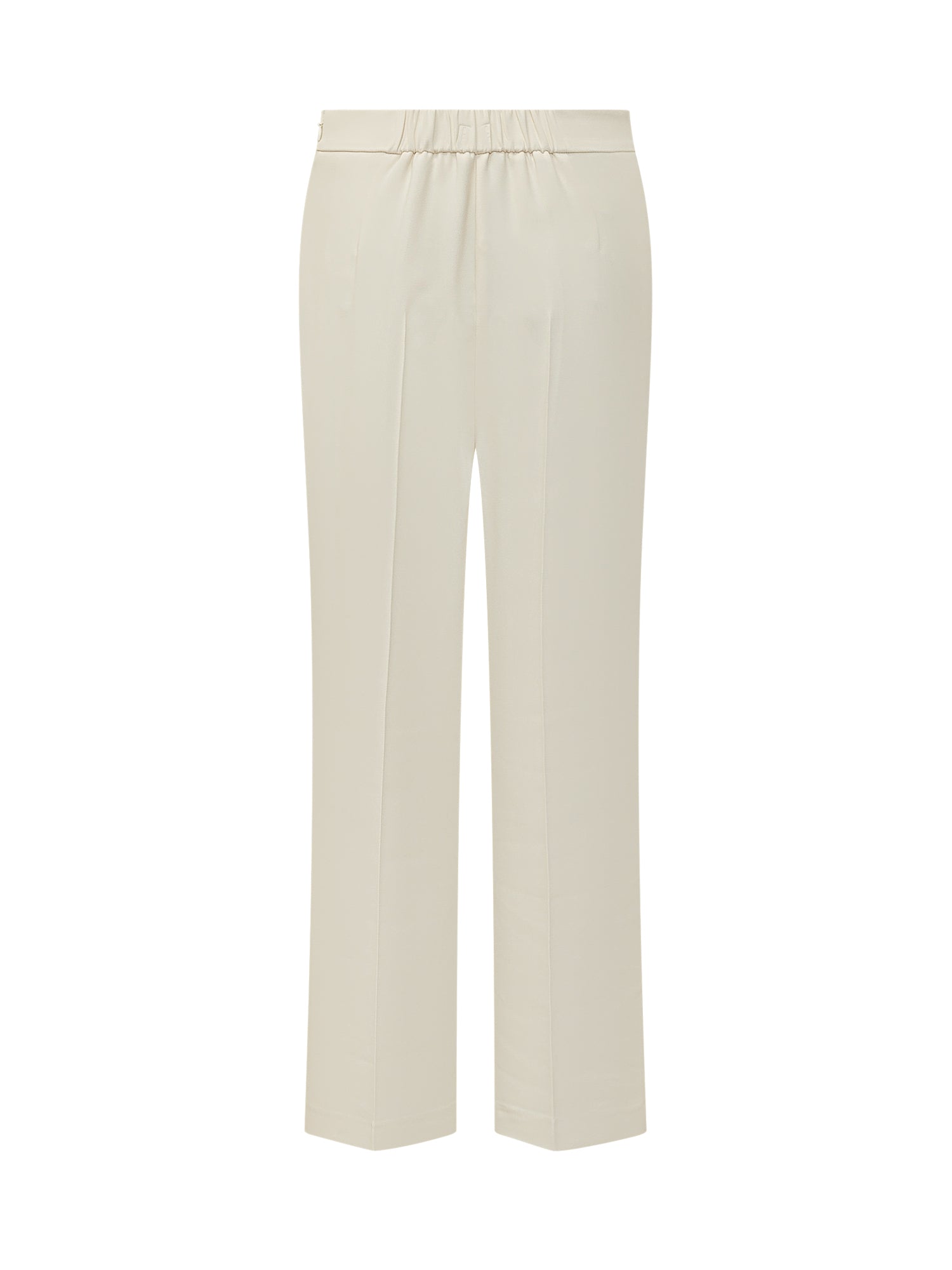 Pantaloni bootcut dal taglio pulito e femminile. Linea leggermente svasata al fondo, vita regolare e costruzione essenziale per una vestibilità slanciata ed elegante, ideale per look formali e quotidiani.