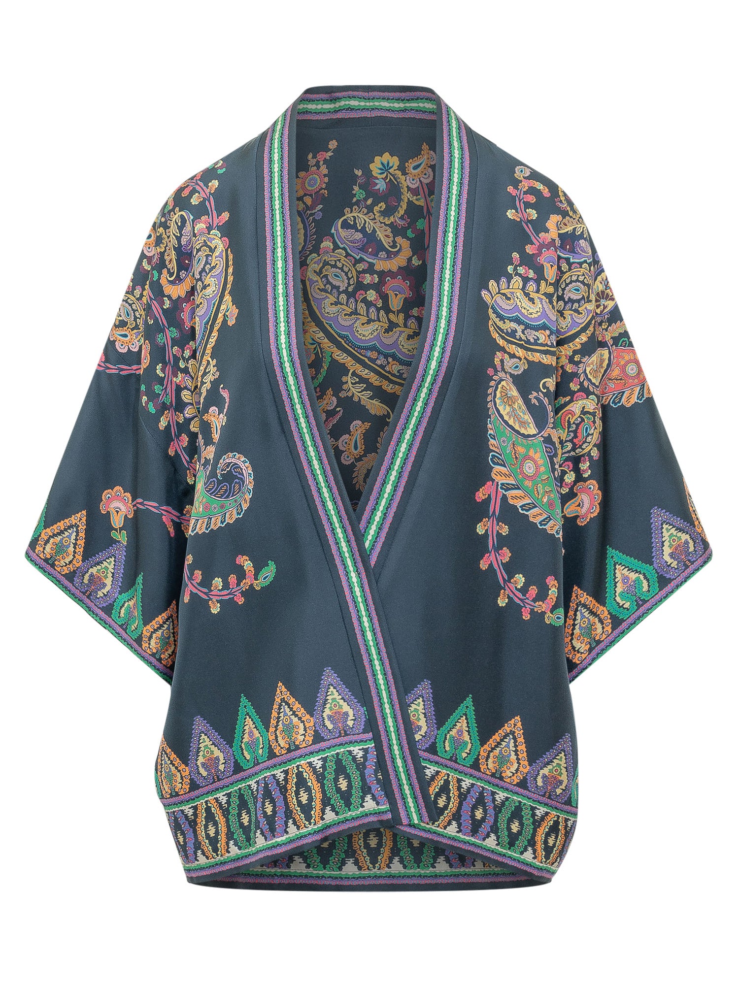 Giacca kesa con stampa decorativa all over e silhouette fluida. Il design avvolgente e raffinato valorizza il look con un tocco artistico.